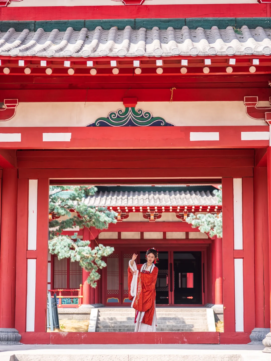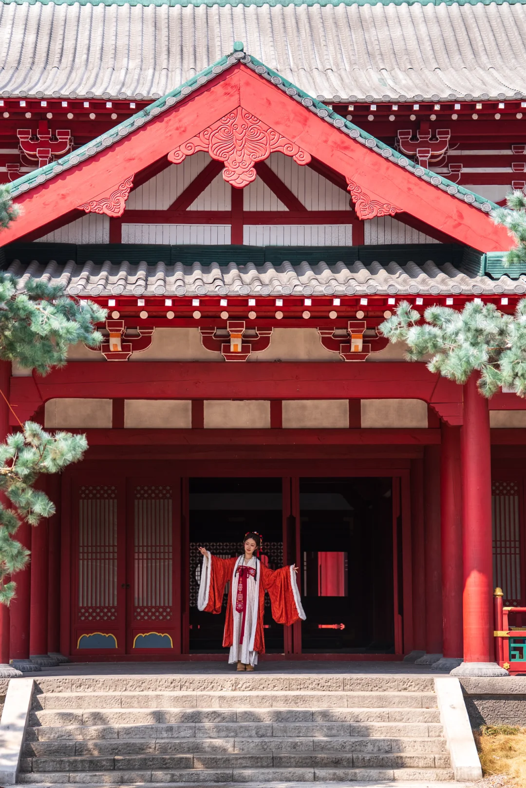 红墙长廊、大殿台阶