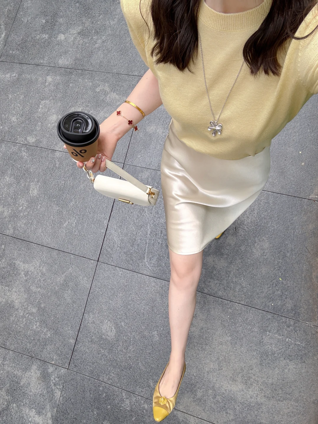 春天就要穿得清新又亮眼!亮黄色针织衫配浅蓝牛仔裤,这搭配堪称春日绝配。