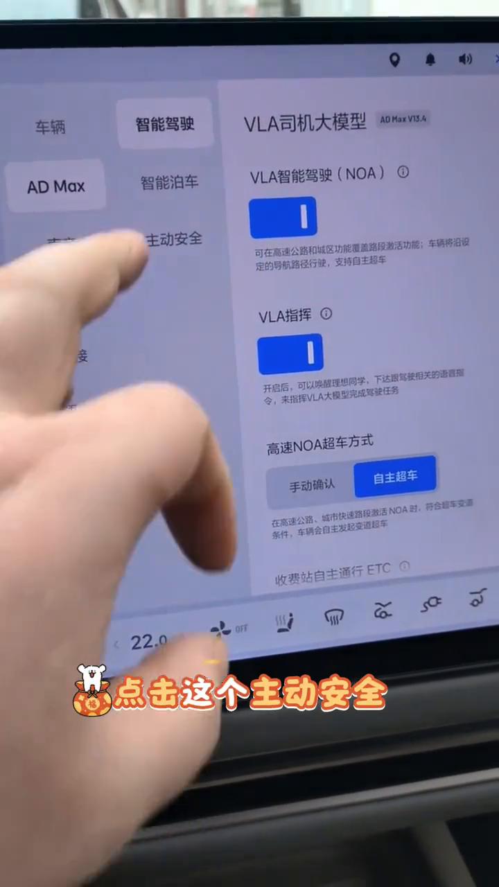 理想OTA8.3后向障碍物提醒。 各位宝子们,理想车机8.3升级之后增加了一个主动安全,就是在倒车的时候会主动提醒后面的障碍物。它怎么设置? ·首先点击一下车机,点击ad,点击主动安全。 ·主动安全这里有很多的设置,大家可以按照我这个页面进行设置。这里更新了一项设置,就叫做倒车后向障碍物提醒(Beta)。它就是在园区内手动倒车时,若检测到近距离存在悬空、d、i、细杆之类的障碍物时,系统就会发出语音的提醒,把它点开。 这样就设置好了。