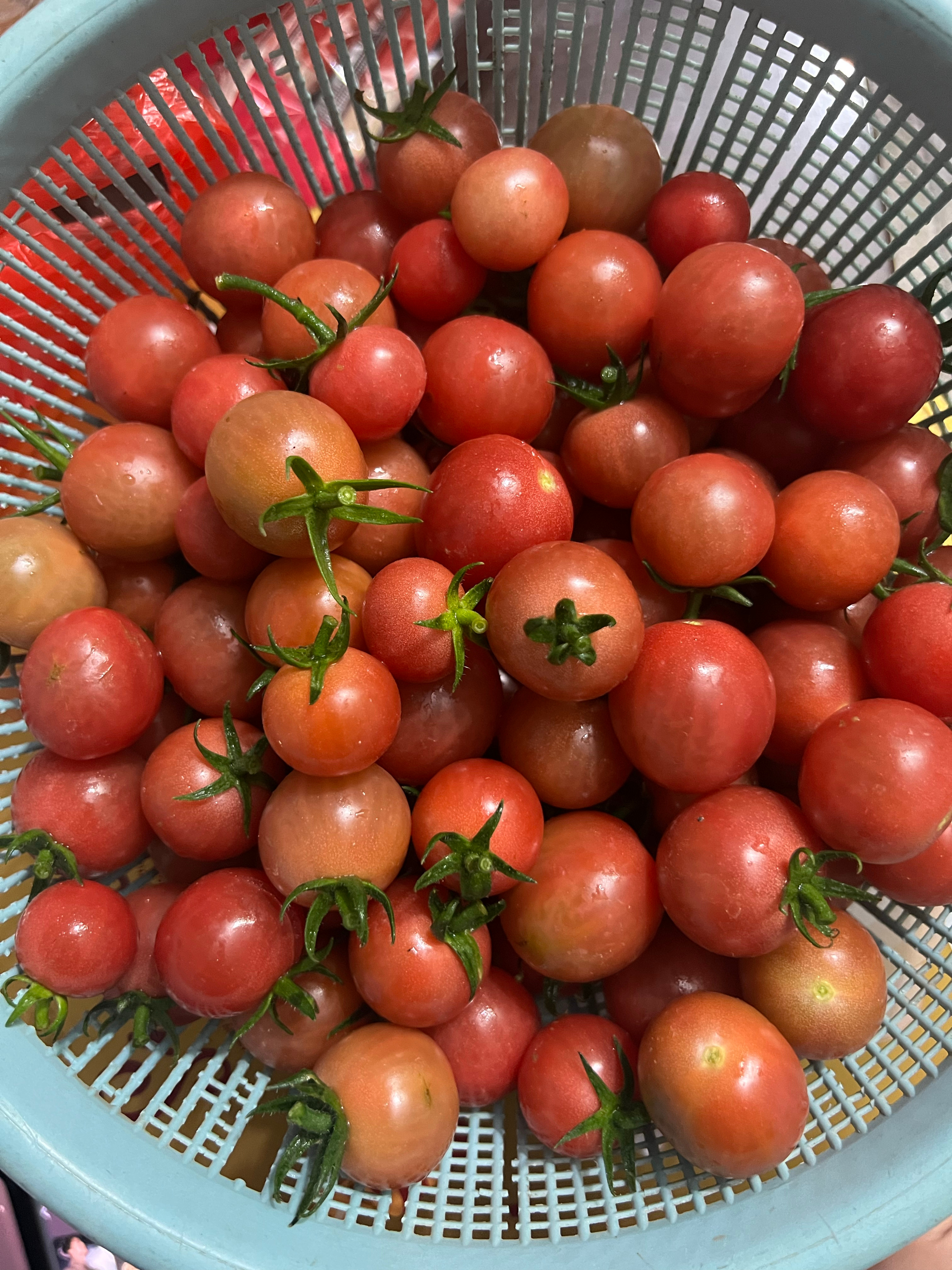 米米奶奶下午又从菜地里摘回来了这么多小番茄~