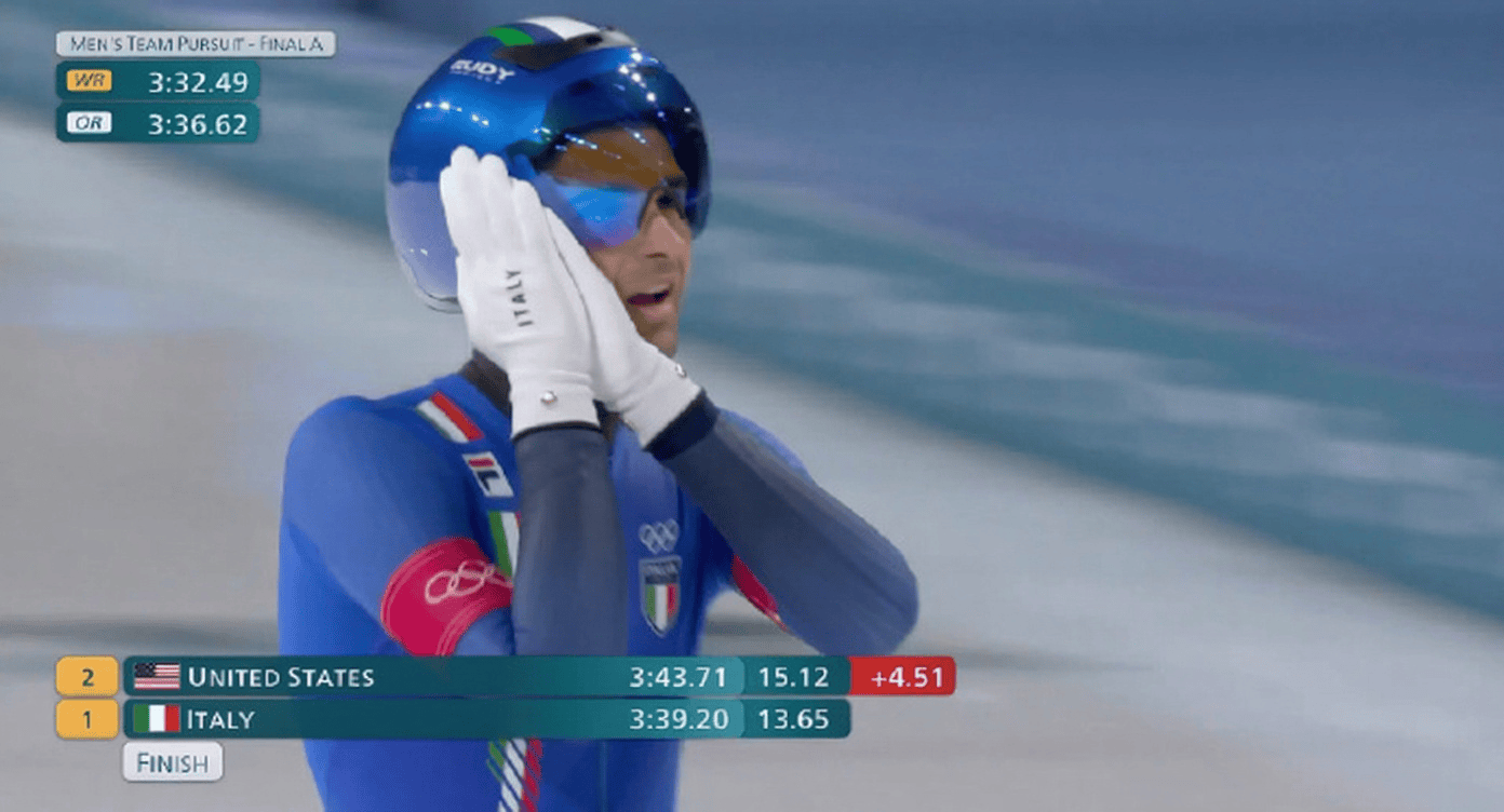 虎扑02月18日讯在刚刚结束的速度滑冰男子团体追逐决赛中,主场作战的意大利以3分39秒20击败美国队强势夺冠。