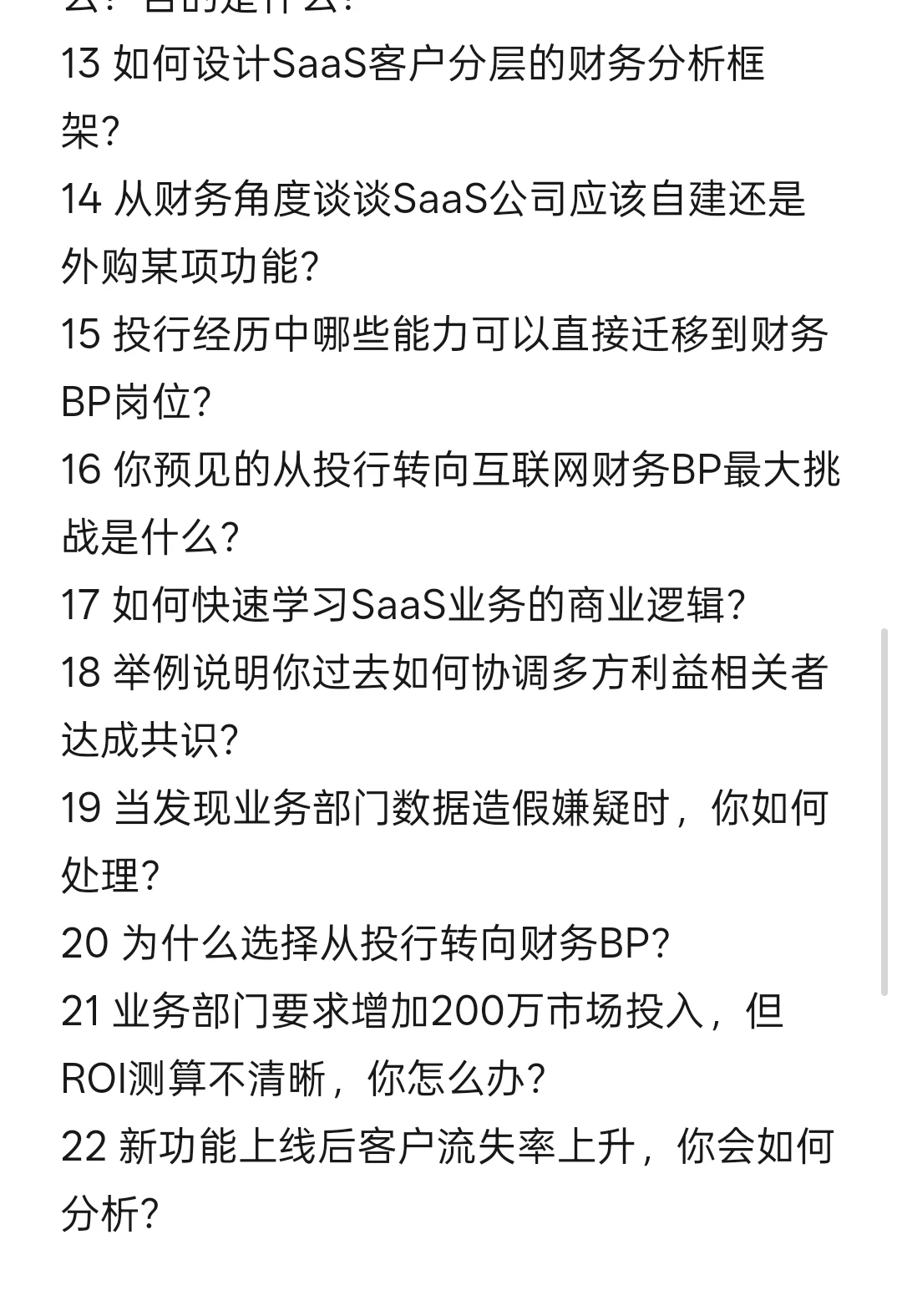 16 你预见的从投行转向互联网财务BP最大挑战是什么?