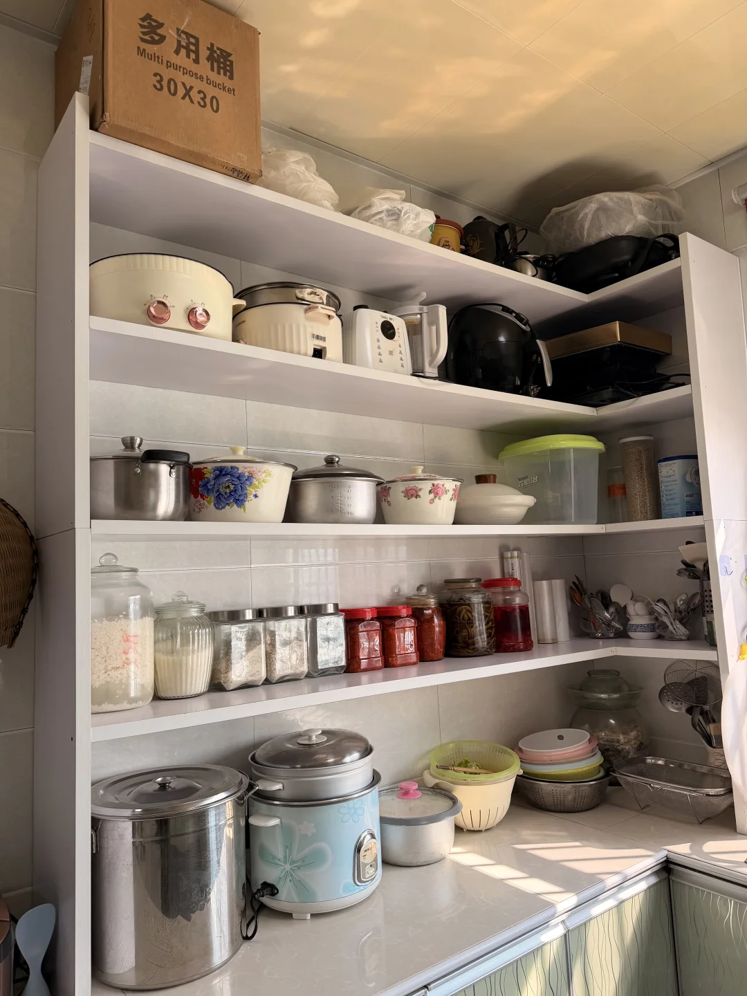 十一年前买的房子没有请设计师啥的,那个时候买完房子装修的钱所剩无几,自己就随便装修了一下基本都是白色基调,特别是厨房觉得厨房柜除了好看以外收纳空间真的不够,直接网上买的板弄上去没有想到放东西是真爽啊我家别的不多锅贼拉多 昨天晚上十点到家的,江苏到苏州16个小时休息了一晚一大早就开始动员全家开始大扫除了 收拾完哪哪儿都舒坦了明天开始各种卤味美食烤肉制作 俗话说 擦去一年风尘,整理满心欢喜,老家越干净,年味越浓。