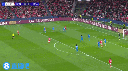 直播吧02月18日讯欧冠1/8决赛附加赛首回合,皇家马德里客战本菲卡,第22分钟,阿诺德马赛回旋摆脱上抢球员。