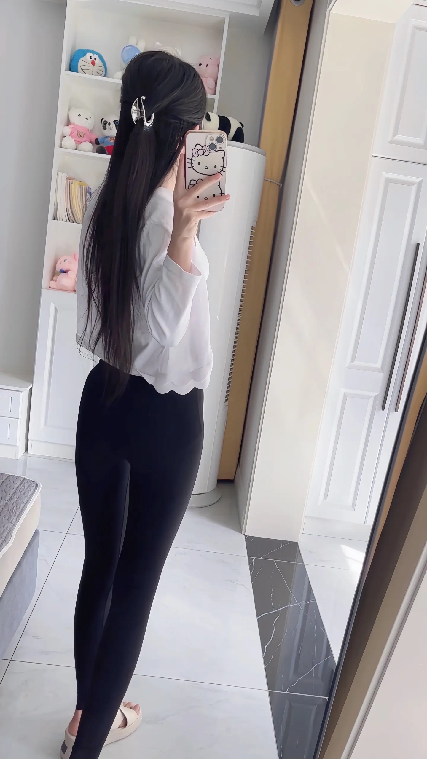 对镜拍清纯瑜伽裤完美身材背影杀