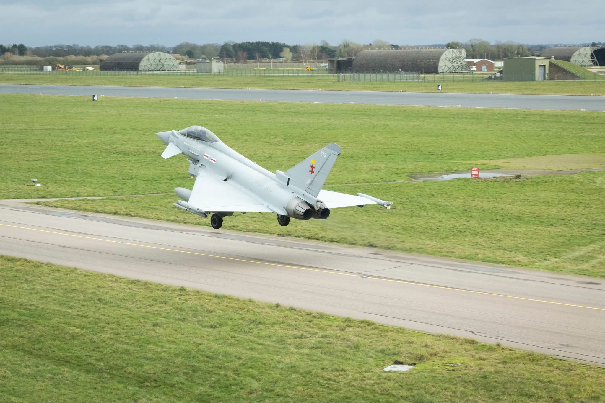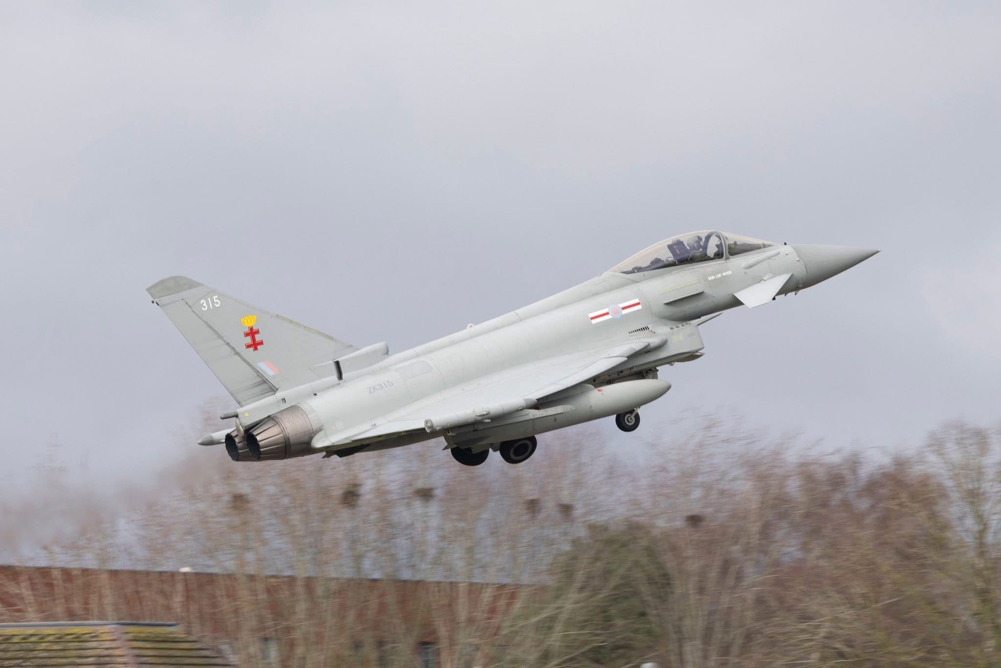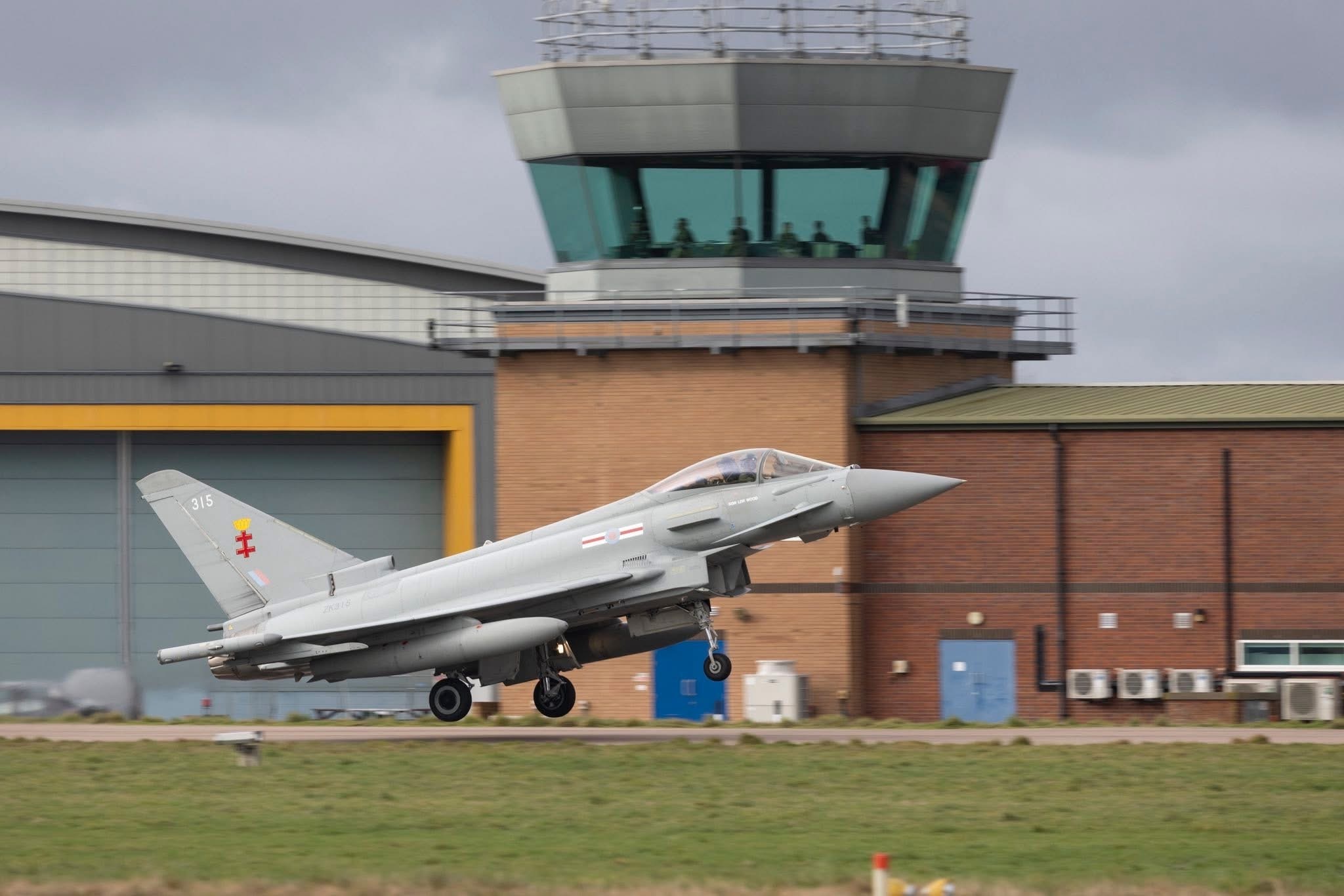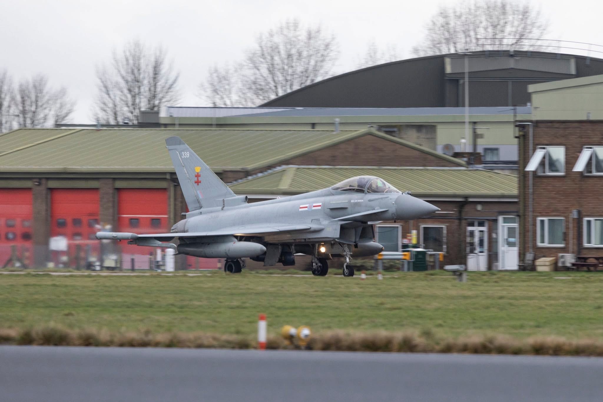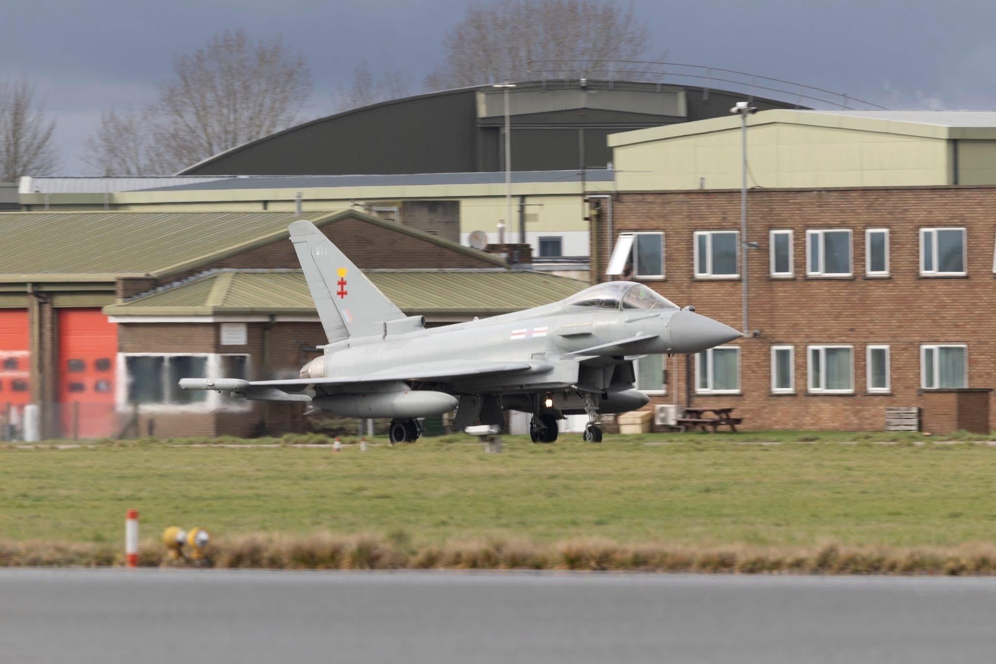 英国皇家空军(RAF)在科宁斯比空军基地(RAF Coningsby)开展滑行道起降训练,来自第41试验评估中队的2架台风战机参演。今日台风军用飞机信息汇 Photo credit: RAF Coningsby