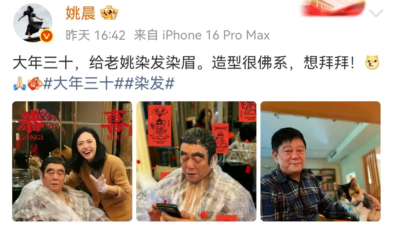 姚晨演我回老家过年姚晨有点演我回老家过年了一整个撒欢了玩儿 欢天喜地乐呵呵~和小朋友一起放烟花 给老姚染头做造型 像个孩子王一样跟爸爸耍宝 拍花拍猫拍夜景 太喜庆快乐了!感染力 max!🧨🧧