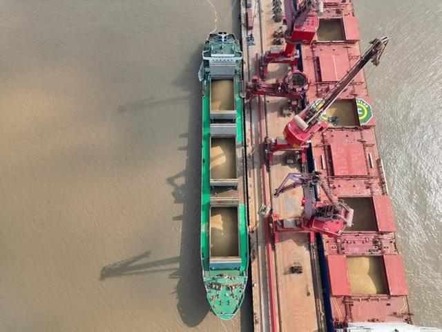 “益嘉9”轮装载大豆。由舟山海事局供图