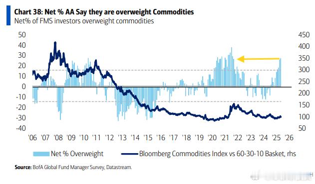 1️⃣ 筹码分布:极度拥挤的多头盛宴配置触顶: 目前机构对大宗商品的超配程度是2022年5月以来最高;对股票的配置比例也冲到了近一年来的高点。
