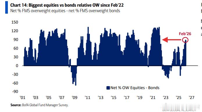 抛弃债券: 与此相对,债券的低配程度创下2022年9月以来新高。这种“弃债投股”的极端分化,显示出市场对避险资产的极度轻视。