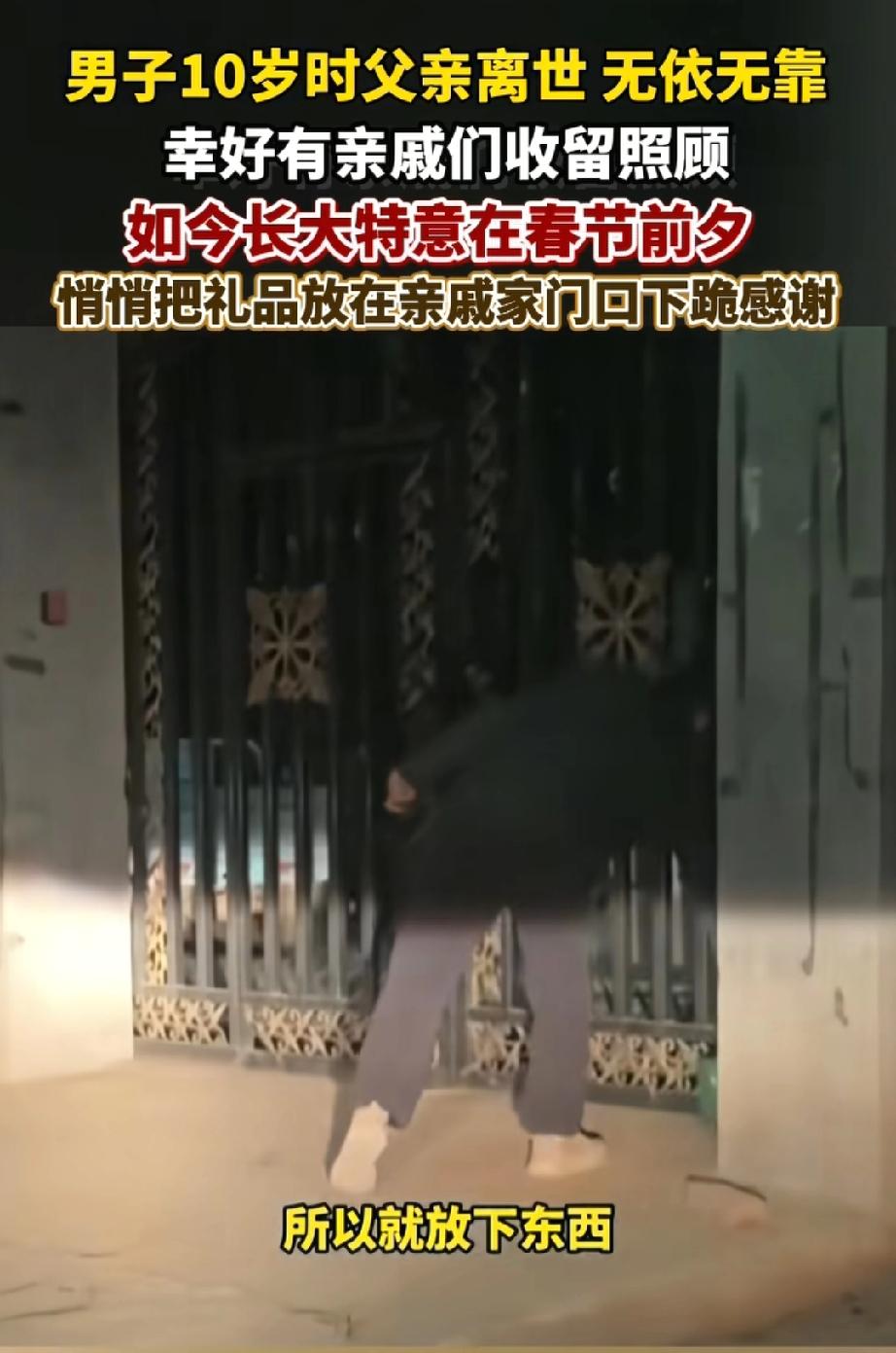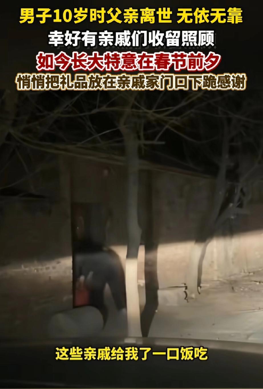 10岁没了爹,也没见过妈,全靠亲戚们一口饭一口水拉扯大。 现在30岁,创业失败、负债累累,觉得没脸见人,就趁着深夜,把礼品和钱悄悄放在亲戚门口,郑重跪下磕头,转身就走。 就喜欢这种懂感恩的男人!困难都是暂时的!就冲这人品,以后绝对能风生水起,错不了的!