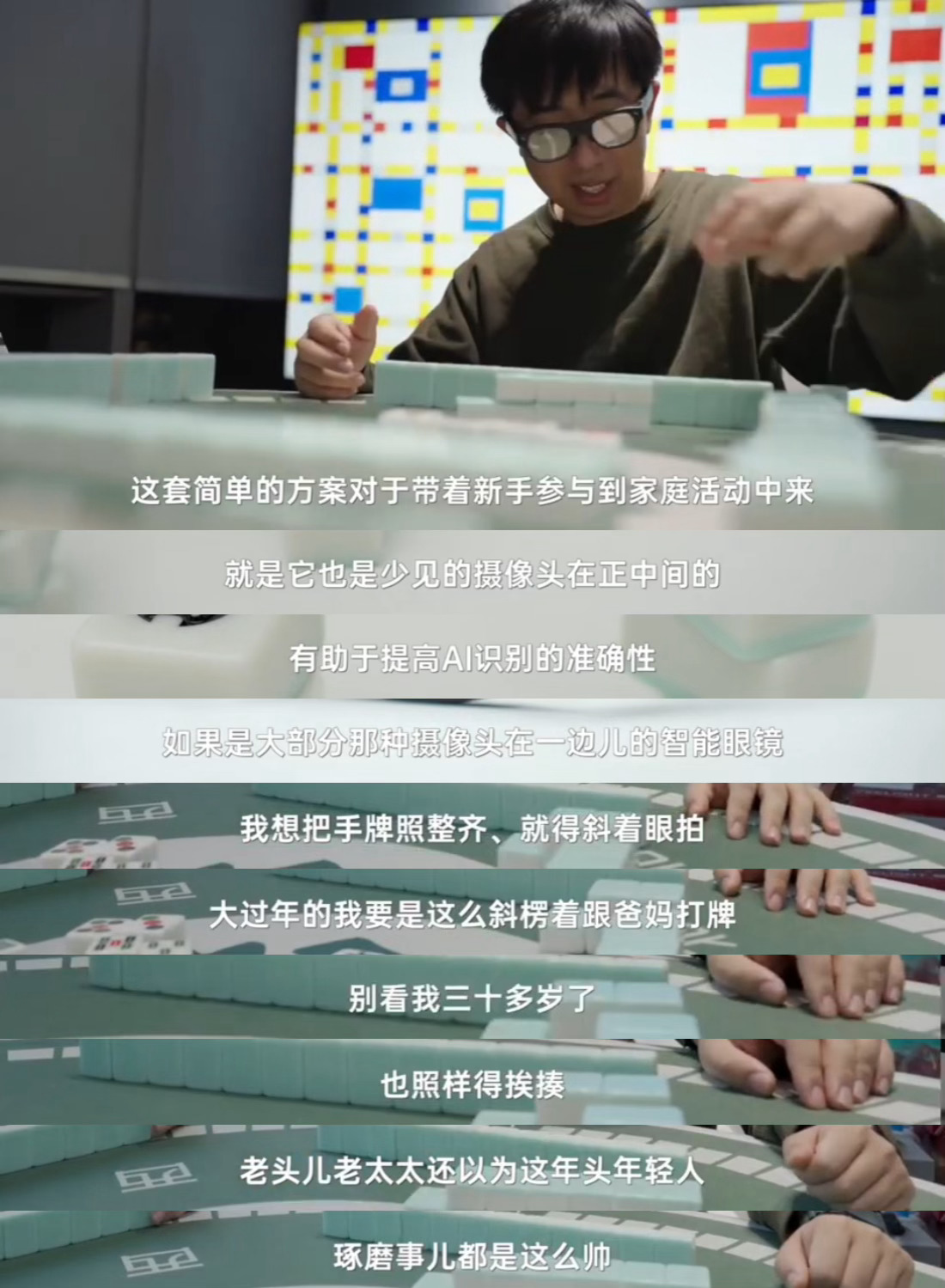 建议麻将桌全面禁止AI眼镜谁懂啊打麻将已经开始有邪修了!俺们麻将小白也可以上桌了!喜大普奔,终于可以在过年好好切磋一下麻将技艺了