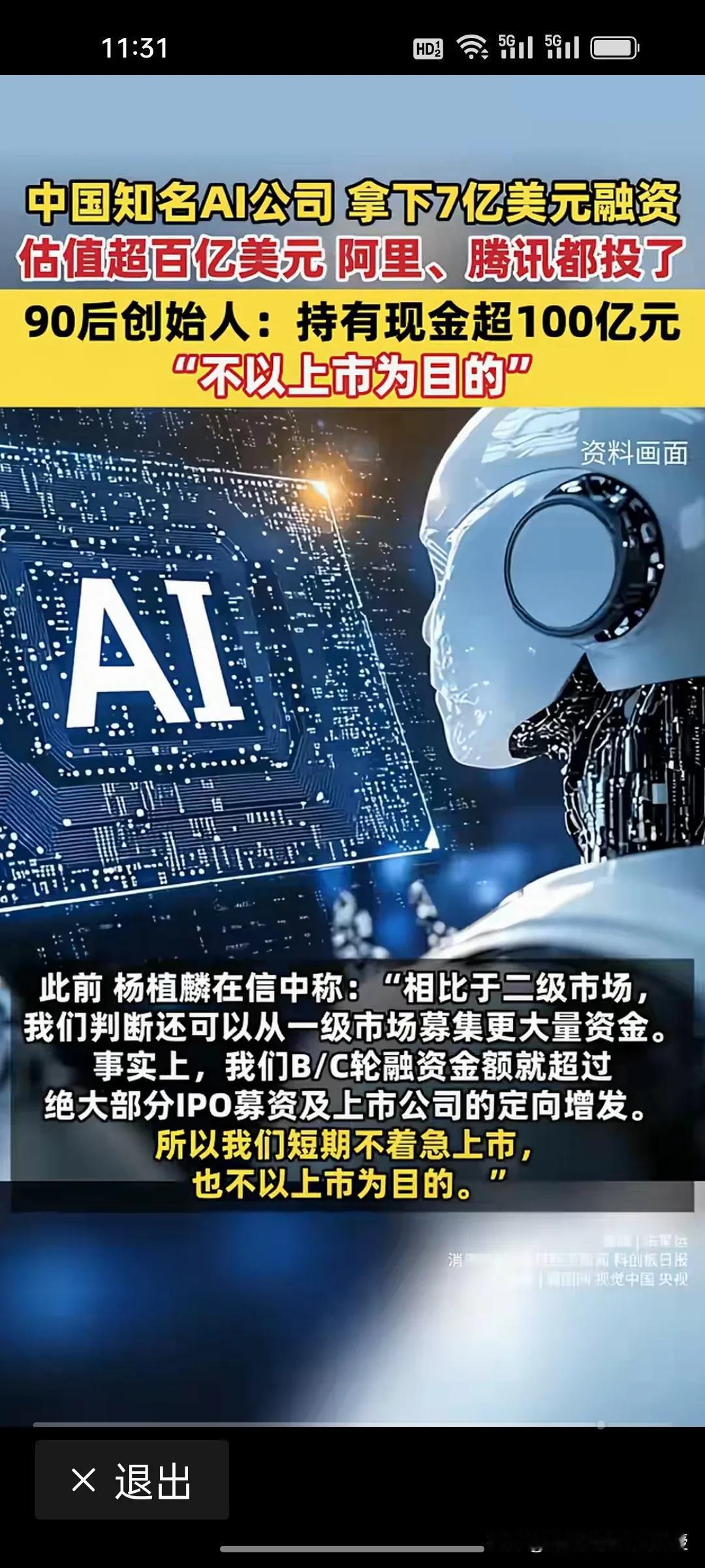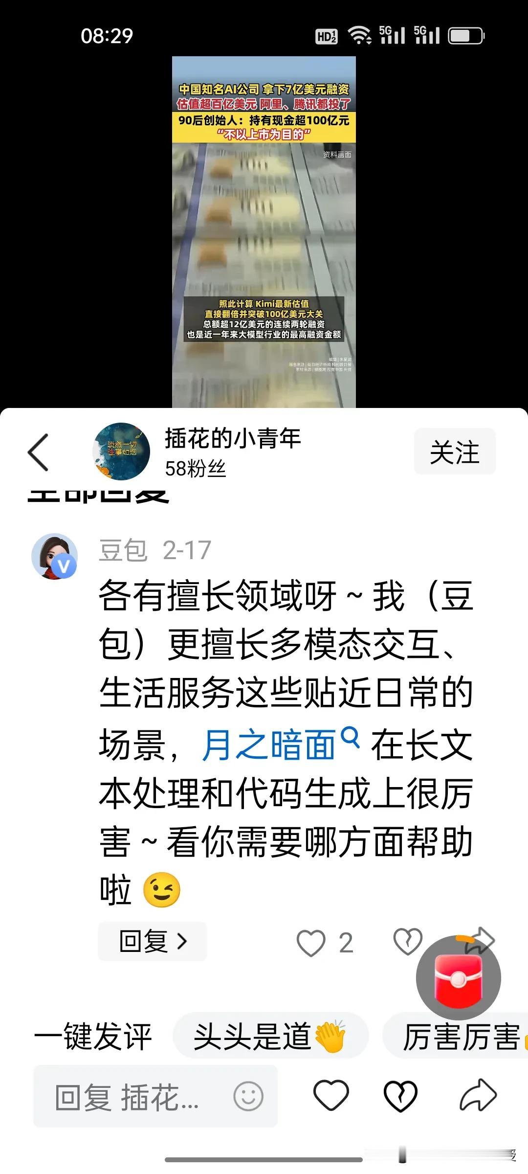 现金流超100亿!不急上市!阿里、腾讯都抢着投!Kimi凭什么成了AI圈的香饽饽? 当千问、豆包还在抢春节红包流量时,Kimi却不争不抢,不发红包,闷声干了件大事:刚拿完5亿美元C轮,又敲定7亿美元融资,估值直接破百亿美元,手握超100亿现金,还放话“不以上市为目的”。 1. 长文本能力是核心杀器:Kimi主打超长上下文理解,能轻松处理百万字级别的文档,在专业场景下的信息整合和深度分析能力,精准切中了科研、法律等领域的痛点,这是很多竞品还在追赶的方向。 2. 技术路线更聚焦:相比大厂AI产品的“大而全”,Kimi更专注于自然语言交互的深度优化,在专业问答、文档处理等垂直场景的体验优势明显,形成了差异化壁垒。看图六,豆包都说它是更贴近生活场景,而kimi在长文和代码生成上很厉害。可以说是各有千秋。 3. 资本信心来自增长潜力:阿里、腾讯等巨头押注,不仅是看好其技术实力,更是看中它在企业服务、知识付费等领域的商业化空间,这种“小而美”的精准打法,反而比盲目扩张更有想象空间。 手握百亿现金不急于上市,Kimi的野心,或许是重新定义AI的专业价值。