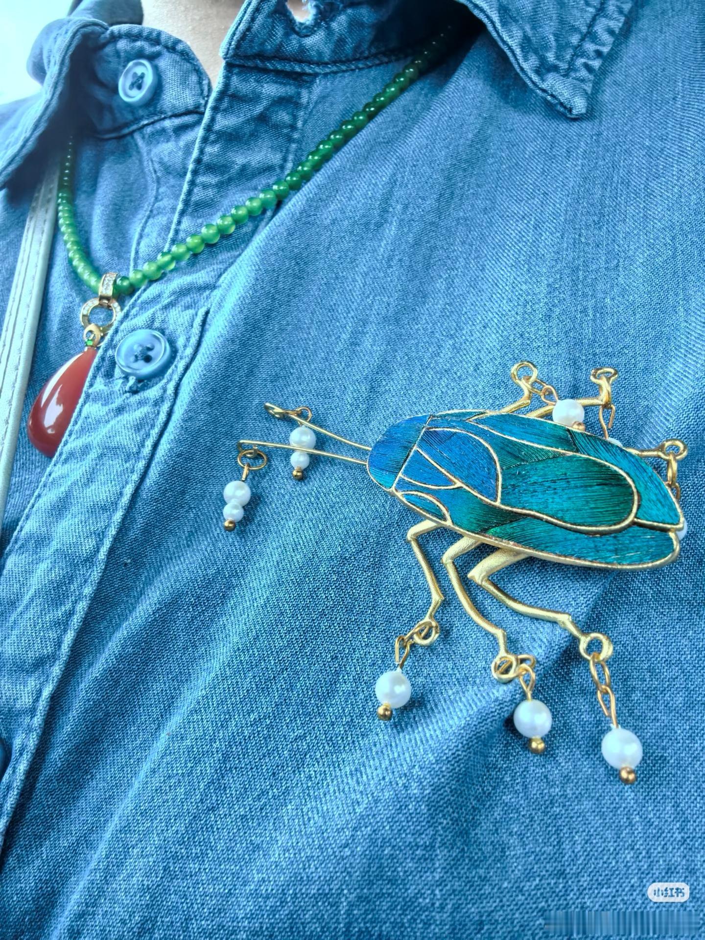 女生半年卖出800多只点翠大蟑螂点翠大蟑螂还蛮精致的。
