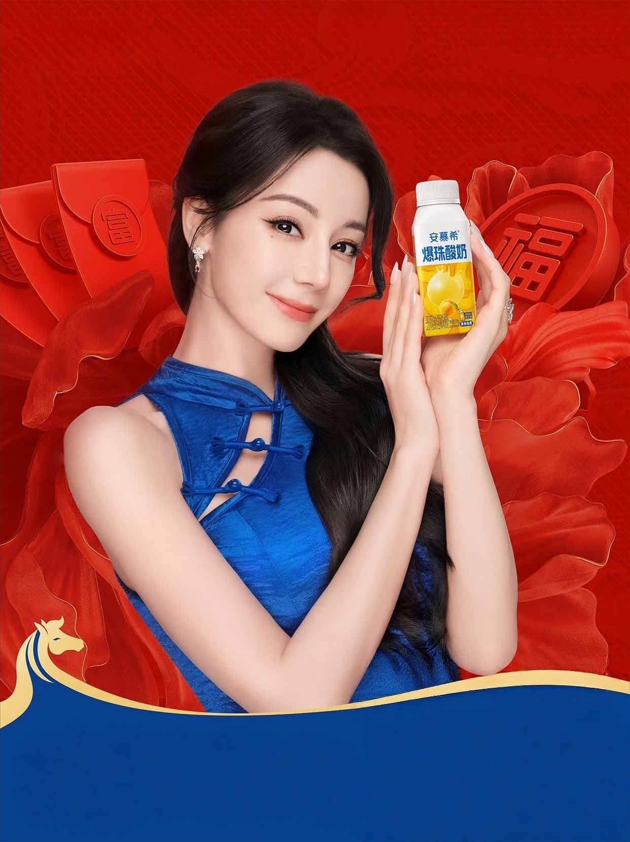 春晚看迪丽热巴看入迷了迪丽热巴安慕希新年物料