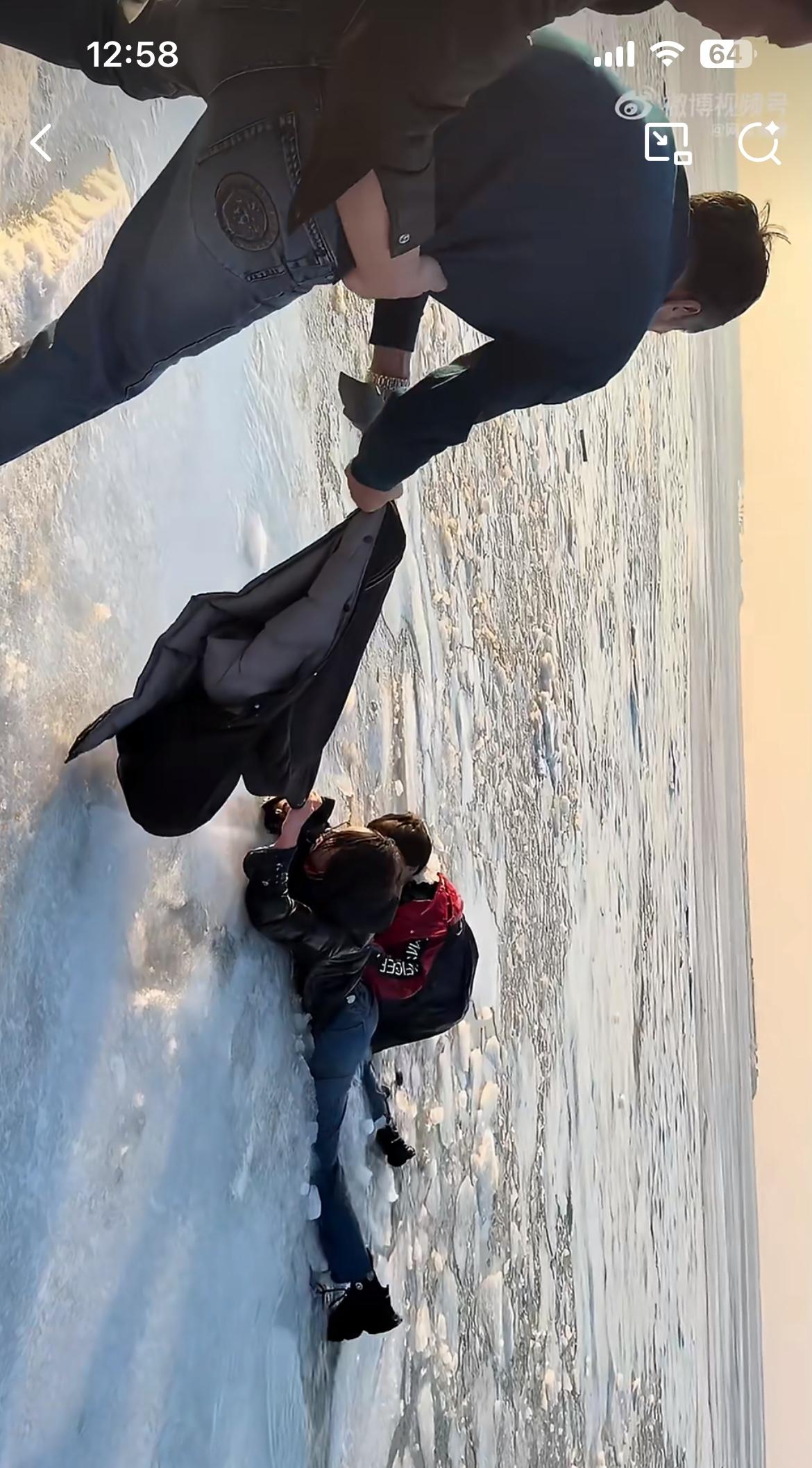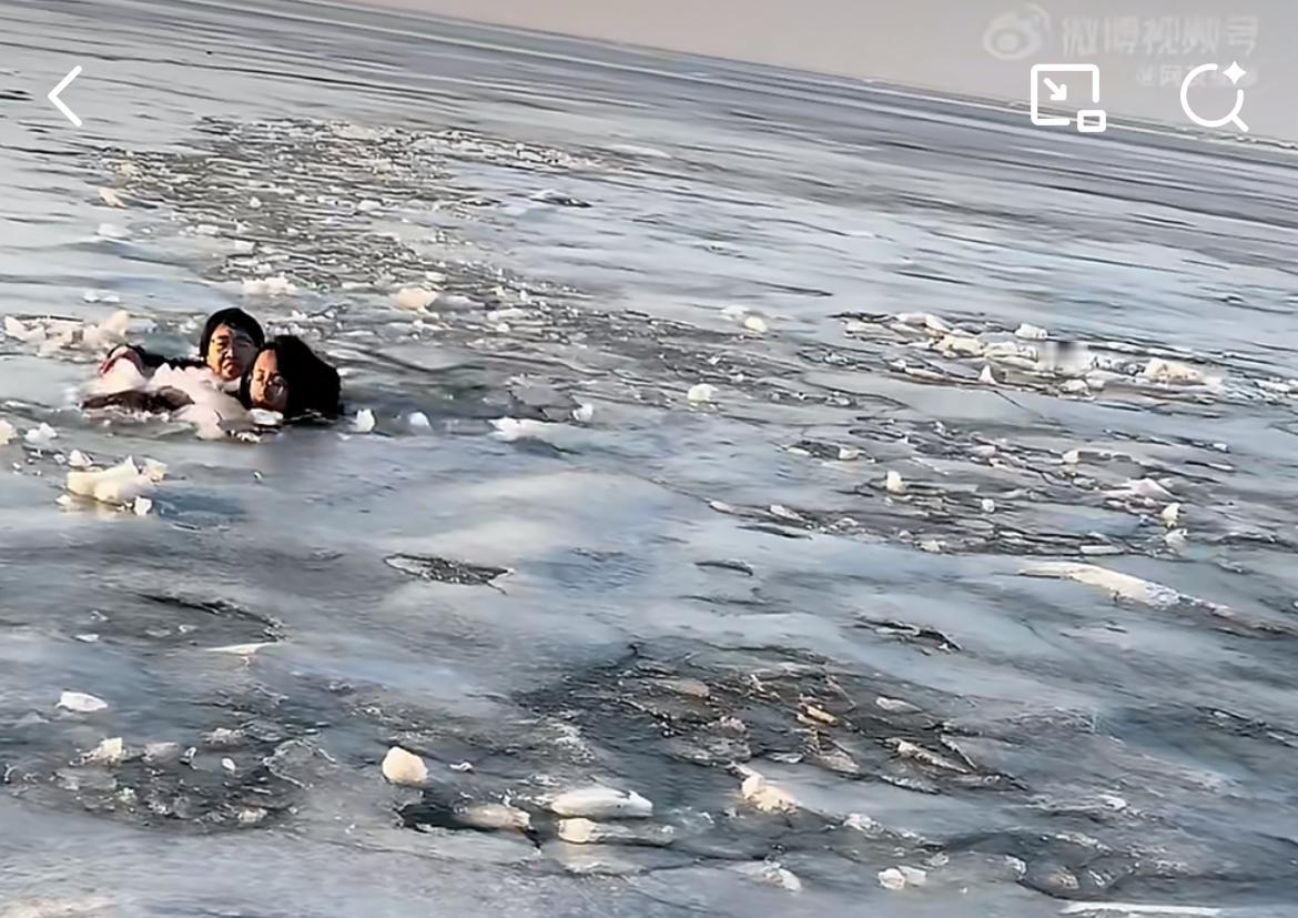辽宁营口一对母女陷入海边冰窟窿,热心大哥脱掉棉袄当救生绳,把他们从海里拉起来。2月17日,一对母女在海边踩冰,因为气温升高,冰面不稳定,母女双双坠入冰窟窿,一个女子听到呼救声,带着自己大哥闻声过去救人,大哥脱掉棉袄搭过去,把母女拉起来。这个大哥有勇有谋,太厉害了。冰面惊险一幕 女孩冰窟救人