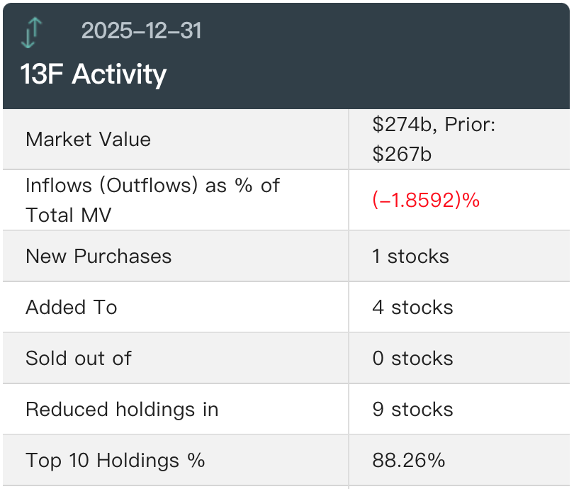 根据美国证券交易委员会(SEC)披露,伯克希尔哈撒韦递交了截至2025年12月31日的第四季度持仓报告(13F)。这是巴菲特执掌伯克希尔哈撒韦60年的最后一份13F持仓报告,巴菲特的继任者格雷格·埃布尔已于2026年1月1日正式接任CEO。这份最新13F持仓报告显示,在巴菲特担任CEO的最后一季度,伯克希尔哈撒韦继续调整科技巨头持仓——连续第三个季度减持苹果、大幅削减亚马逊持仓,同时还减持了美国银行,并首次建仓传统媒体纽约时报。
