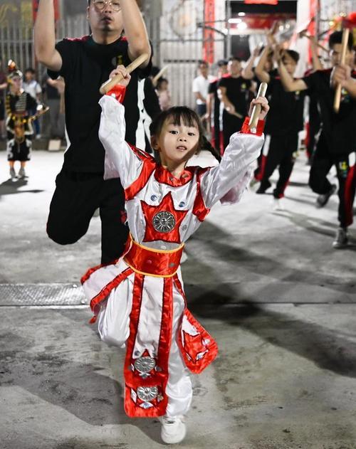 英歌舞里的“小C位” 喧闹锣鼓声中,英歌舞队伍闪亮登场。人群里,一个小女孩稳站C位。她眼神坚定,手中双槌有力挥舞,脚步灵动。稚嫩脸庞满是认真,一招一式尽显英气,似在诉说对英歌舞的热爱,引得众人纷纷喝彩。英歌舞来历