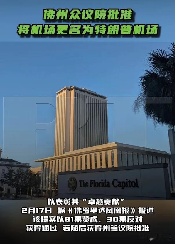 特朗普个人崇拜升级:特朗普居住地机场将更名为“特朗普国际机场”。 据《今日俄罗斯》报道,美国佛罗里达州众议院已通过一项法案,拟将美国总统特朗普居住地附近的棕榈滩国际机场更名为“特朗普国际机场”,以表彰其“卓越贡献”。 2月17日,据《佛罗里达凤凰报》报道,该提案以81票赞成、30票反对获得通过。若随后获得州参议院批准,法案将提交州长德桑蒂斯签署生效。 报道称,此前通往特朗普庄园、连接机场的一条主要公路已以特朗普命名。在华盛顿,美国和平研究所以及首都最重要的戏剧与音乐演出场所之一约翰·F·肯尼迪表演艺术中心都已以特朗普的名字重新命名。 佛州议会今年早些时候还通过一项法案,并由州长罗恩·德桑蒂斯签署成为法律。这项法律指示佛州交通执法部门在南大道沿线竖立一个致敬特朗普的标识牌。 以个人名字命名地名或机构名称,本质上是在搞个人崇拜。特朗普在竞选和执政期间,经常使用极具煽动性的语言来描述自己的能力和成就。他不断宣称自己是“最伟大的总统”“唯一能让美国再次伟大的人”等。这种过度自我吹嘘的表述,目的是让支持者将他视为无所不能、力挽狂澜的领袖,进而对其产生盲目崇拜。 特朗普为什么要搞个人崇拜?估计原因有以下几点:一是巩固政治地位,通过让支持者狂热追随,确保自身在党内及选民中影响力,为竞选连任或推动政策减少阻力;二是获取经济利益,其品牌与形象绑定,崇拜带来的政治资源利于商业变现;三是使自己政策主张更易推行。