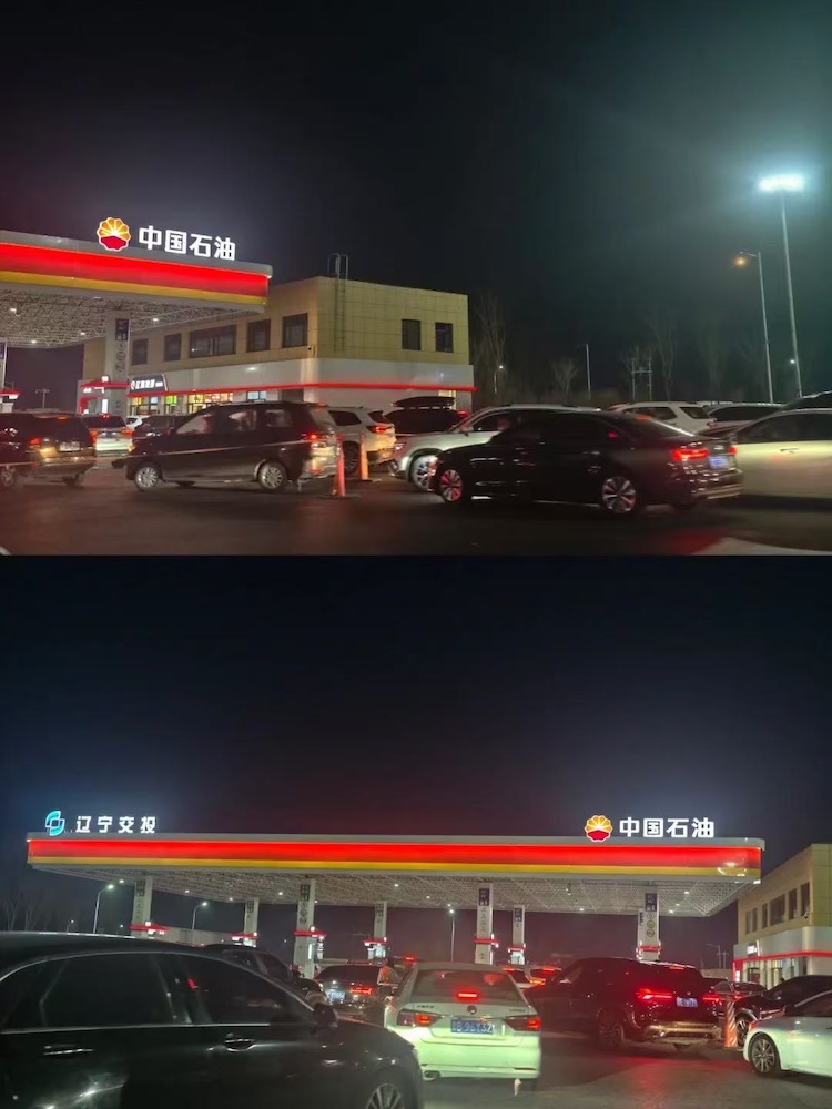 卢银表示,其座驾是一台增程车,纯电续航181公里左右,纯油加满978公里左右。其全程充电4次,加油4次,只有2月14日下午5点开始路过4个服务区都要排队进入,加油也要排队。