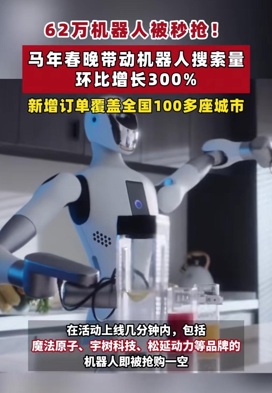 有钱人果然还是不少啊!谁能想到马年春晚的隐藏顶流竟是机器人!舞台上的精彩亮相直接点燃全网热情,相关搜索量环比暴涨超300%,从一线到县域,全国超百座城市都在抢同款,这热度真的太顶了。 春晚同款机器人一上架就被秒空,62万机器人遭疯抢,就连近63万的高端款都没逃过手速大赛,客服问询量、订单量跟着一路飙升,网友的种草速度直接拉满,国潮科技的魅力果然挡不住。 四款国产机器人登春晚可不是偶然,运动控制、情感交互全是硬核实力,这场亮相不仅让国产机器人火出圈,更让大家看到了中国智造的底气。从舞台到市场的火爆,藏着的或许就是大众对科技生活的期待吧!