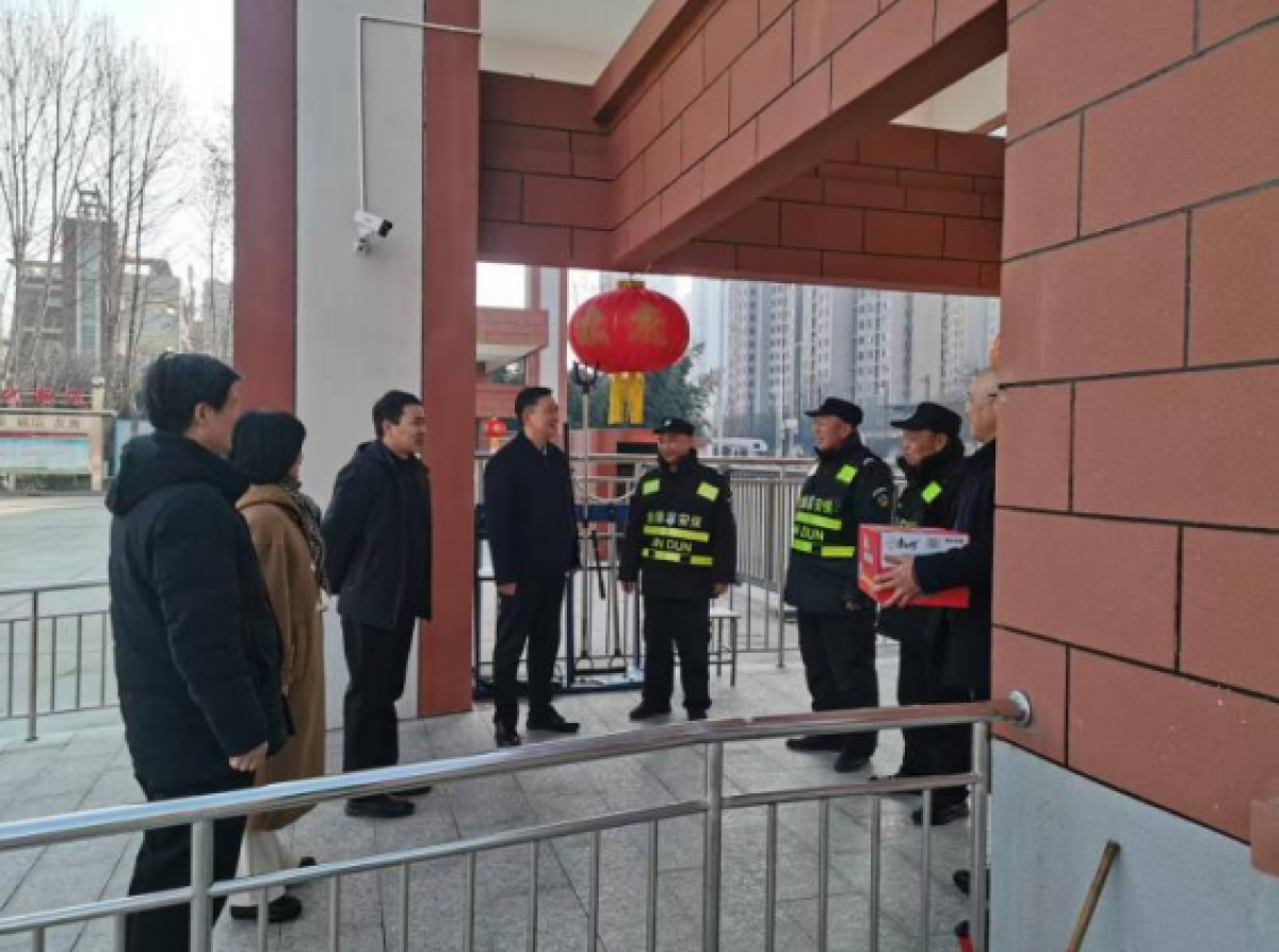 该学校领导在各校区门卫室和值班室与值班人员深入交流,向各位值班人员致以节日的问候,细致了解值班情况,并反复叮嘱大家在坚守岗位的同时注意防寒保暖。