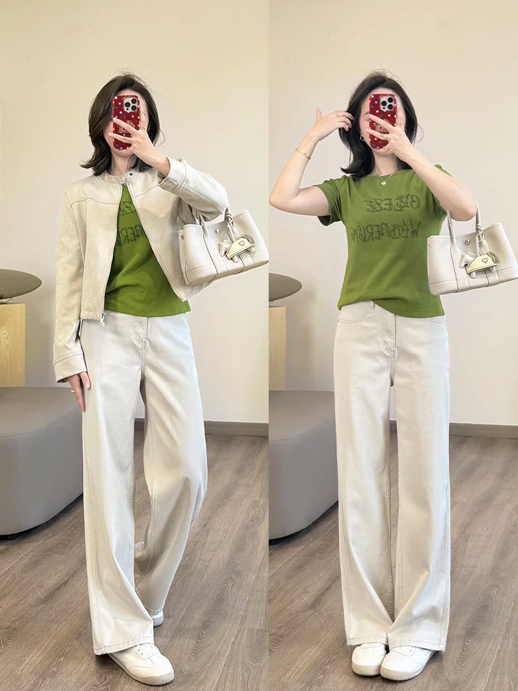 绿色拉链外套配黑色芭比裤这穿搭简直超燃了绿色拉链外套高领设计防风且显精神