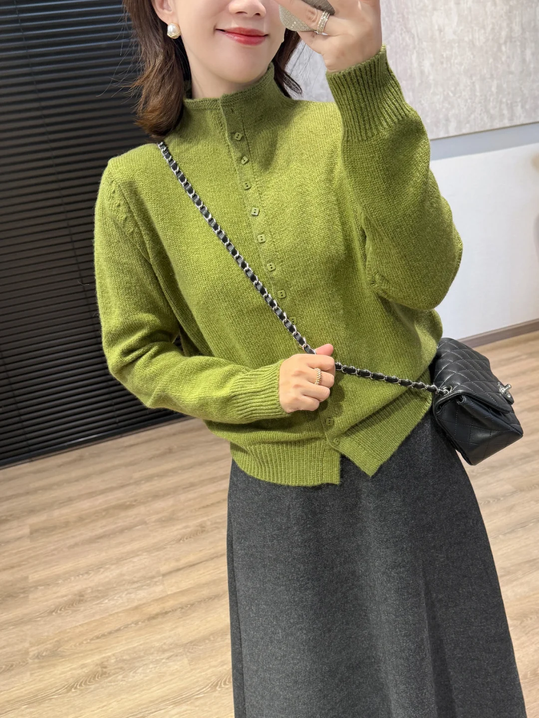 期待春天了!好春天的绿色哇!超显白💚 一种带着一点空气感的清爽 又不失个性! 158小个子穿搭 梨形身材穿搭春季穿搭 2026流行色 绿色系穿搭 绿色毛衣 半身裙穿搭 阔腿裤穿搭 显白的颜色