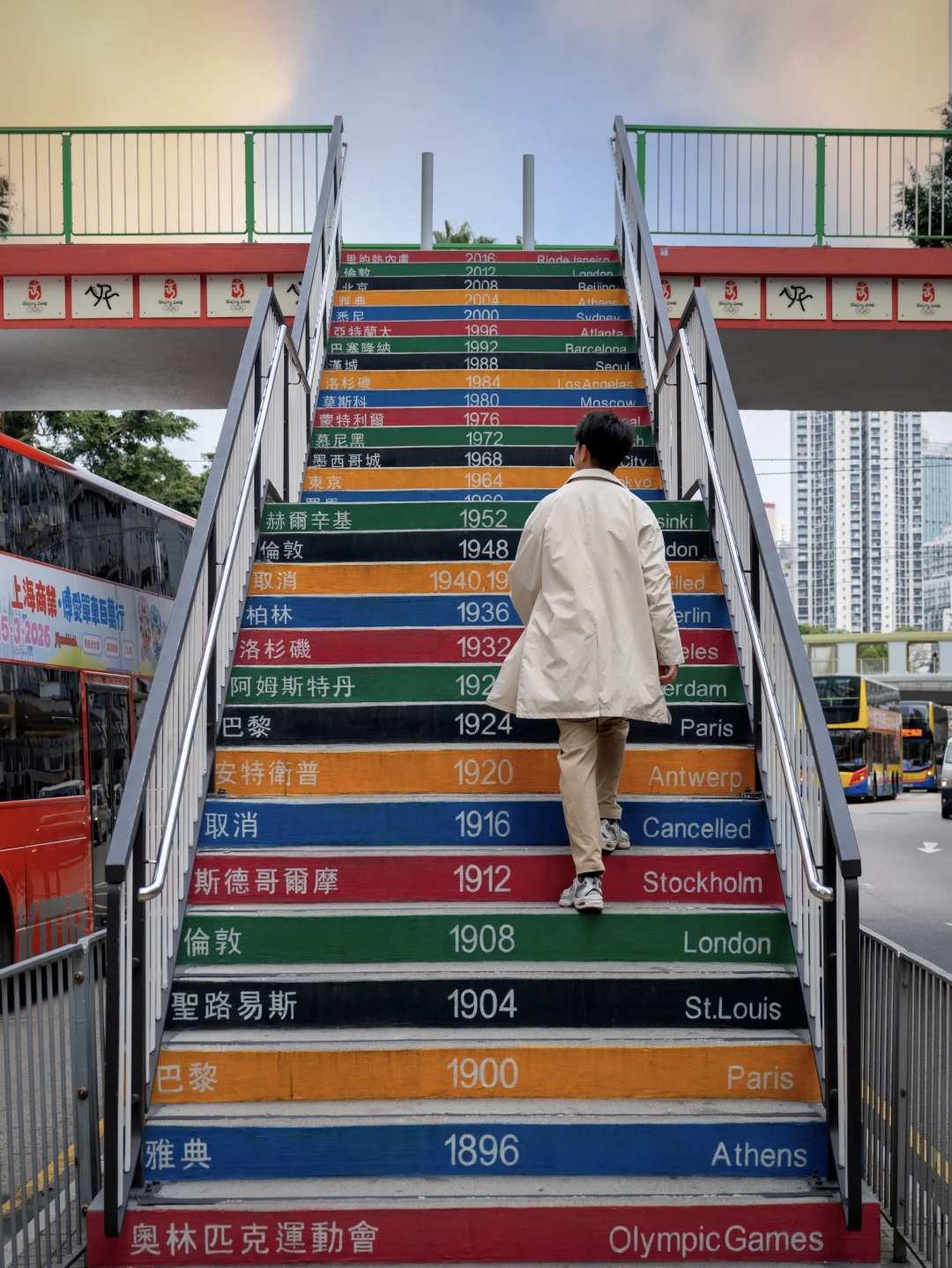 热闹的地标一定少不了铜锣湾,新晋的地铁站名的打卡墙非常有特色,非常可惜的是已在2.11拆除,成了绝版。还有奥林匹克运动会的楼梯,非常有代表意义。