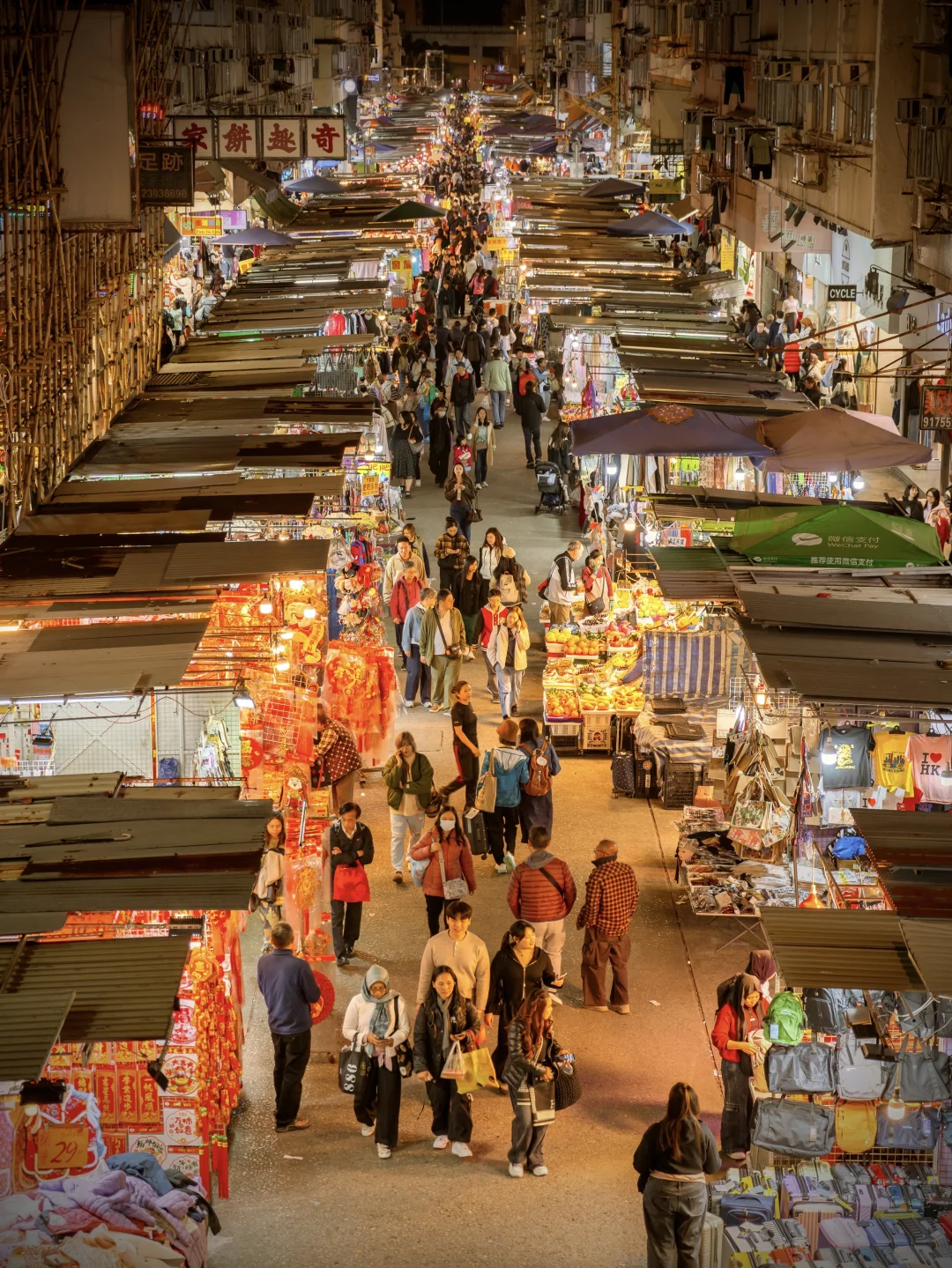旺角作为热门的商圈中心自然少不了年味,特别是通菜街,各个小商铺都铺满年货迎接新春,还有金鱼街的鱼,晚上拍更好看。从天桥往下俯拍,人间烟火气十足,像极了电影里的年味。
