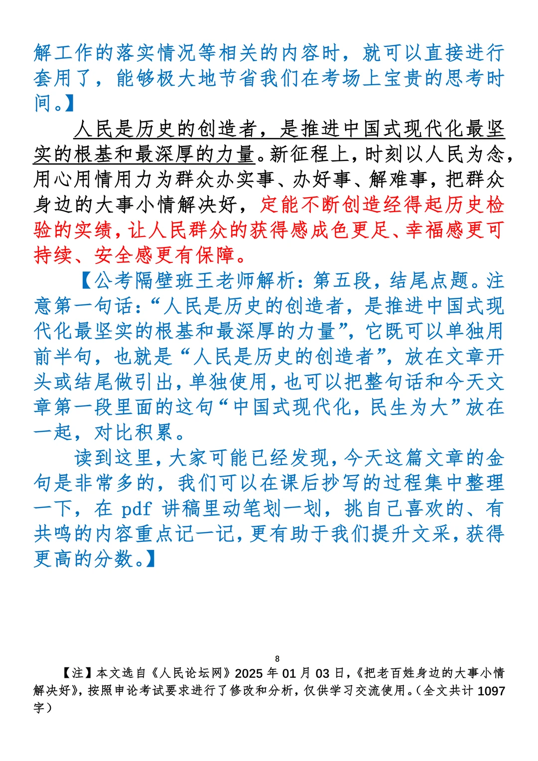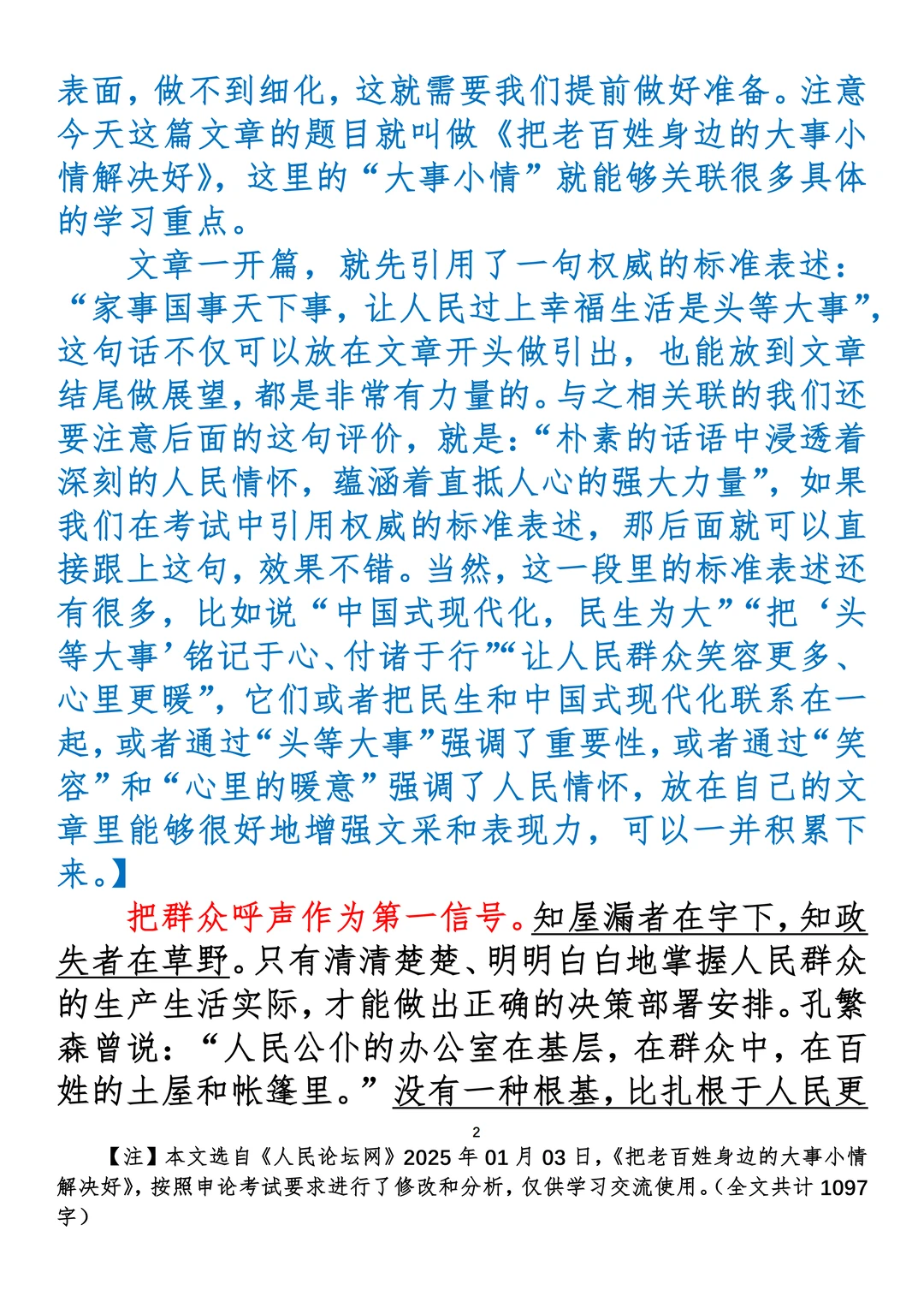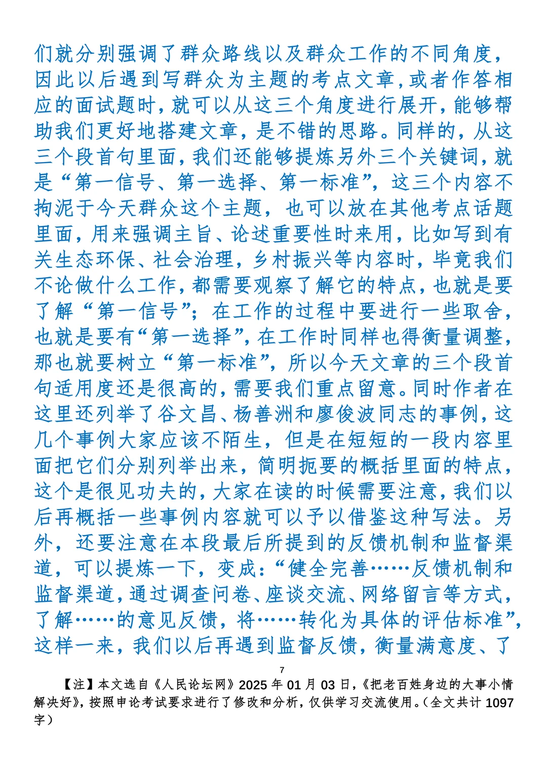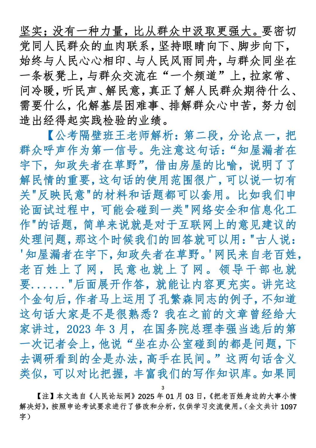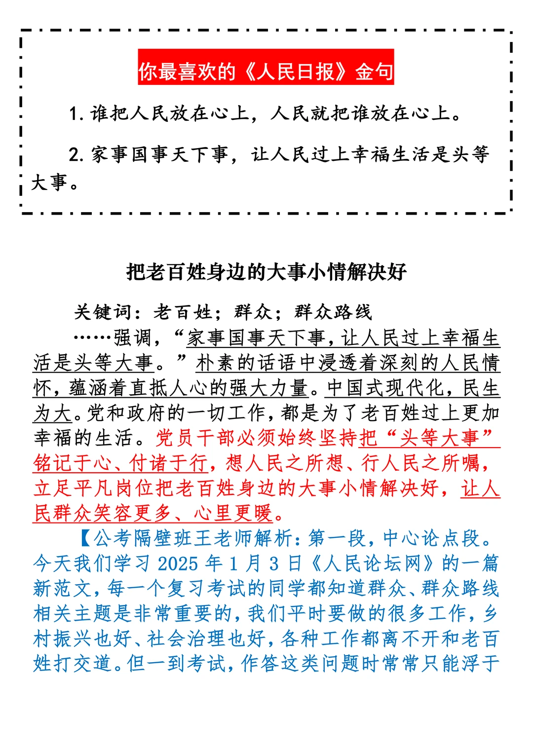 如何抄写:每日抄写文章发在“公考隔壁班王老师”账号,红色字是重点句和结构句,黑色字是正文,蓝色字是解析,大家抄写时不必抄蓝色字。建议先通读全文,做到心中有数再开始抄写,效果会更好。 关于文章:抄写文章来源于人民日报,但每篇文章我都根据申论考试要求进行了修改:一是重写或修改开头、结尾;二是统一段首句句式结构;三是调整段落字数,使文章结构更均衡;四是简化复杂长难句,使之更具可模仿性。每篇文章无论修改多少,都是基于申论考试要求,毫无对人民日报文章品评之意。(此处致敬人民日报)