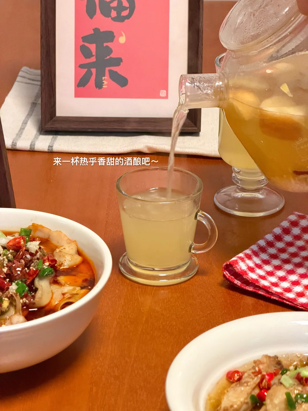 边喝热乎的米酒边吃边聊天真的很快乐!