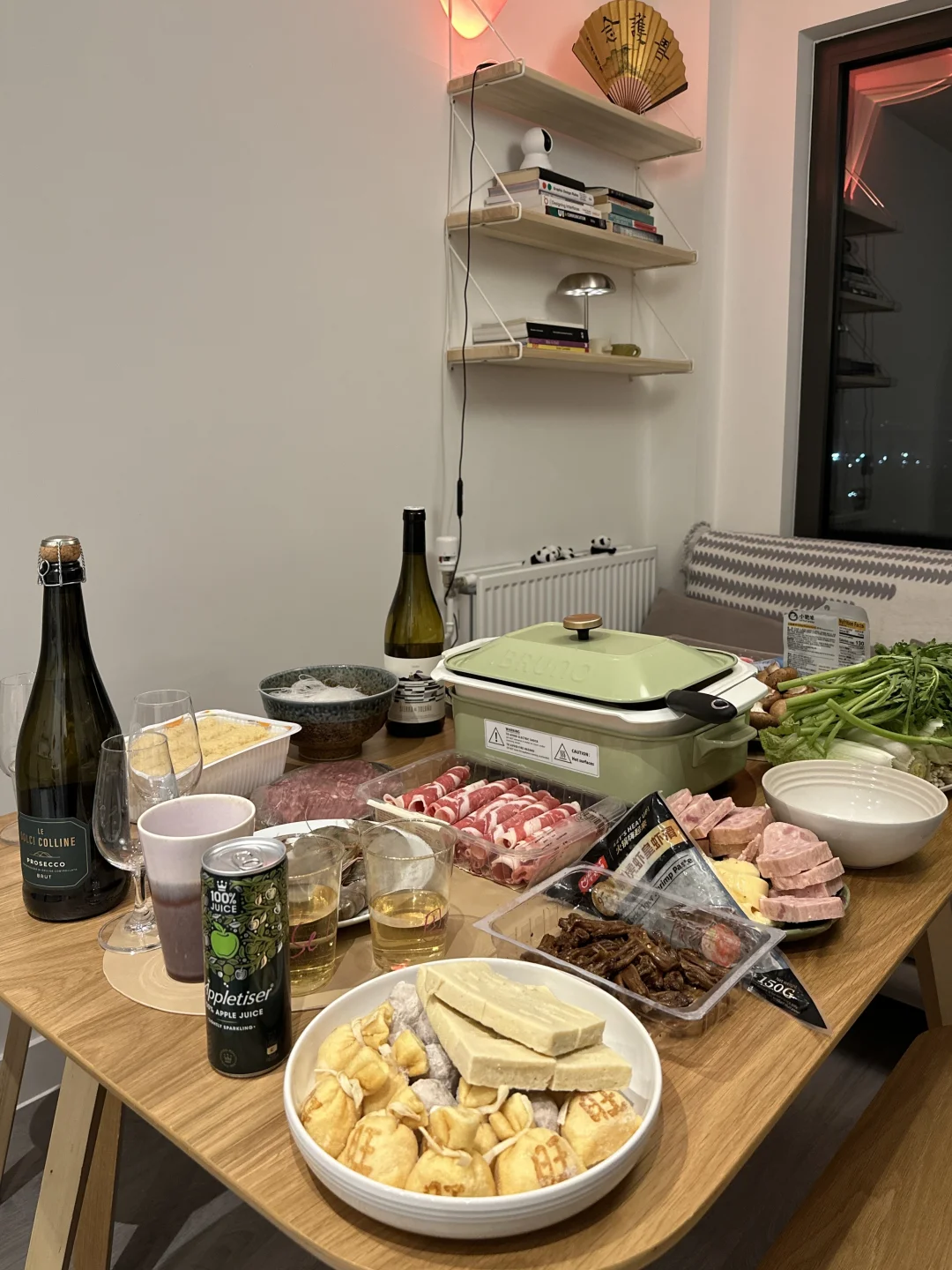 今年和邻居朋友家,一起包饺子,吃火锅,咱就主打一个能吃就行。身边好多同事,要么当天请假,要么回国过年,而我感觉,我对春节其实越长大,越有点无所谓。可能是在上海的时候,越来越没有年味。但是想家,是一直有的感觉🥹