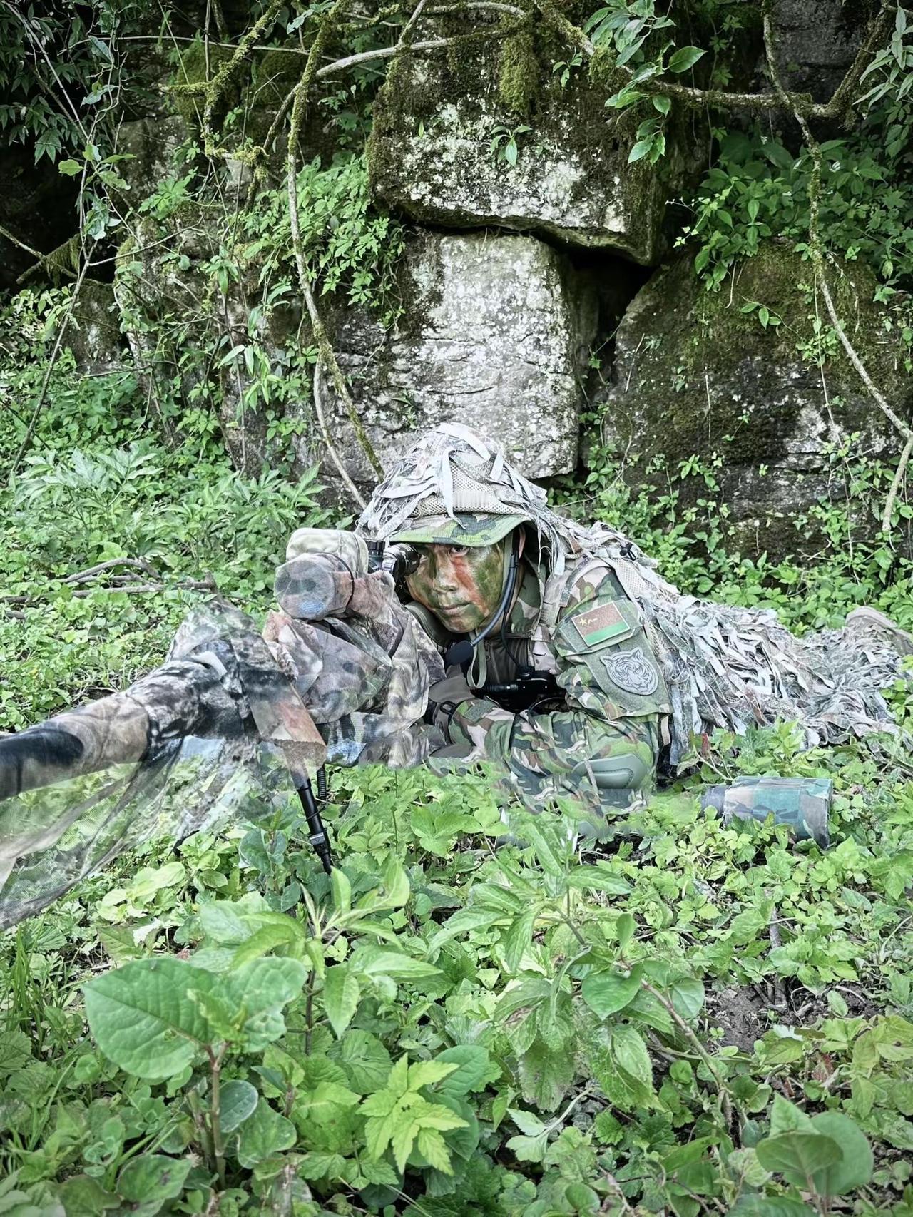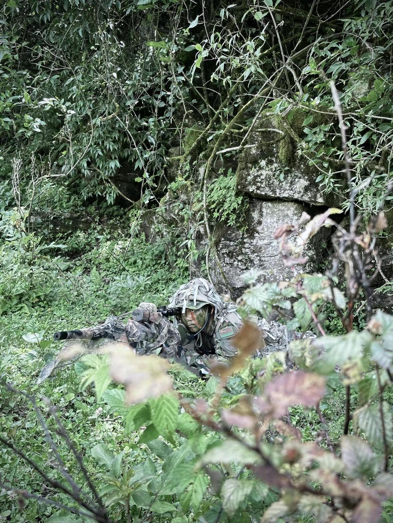 在一呼一吸时间平稳射击。稳准狠悄无声息消灭敌人大五叶迷彩 战术装备 狙击手 军事拍摄