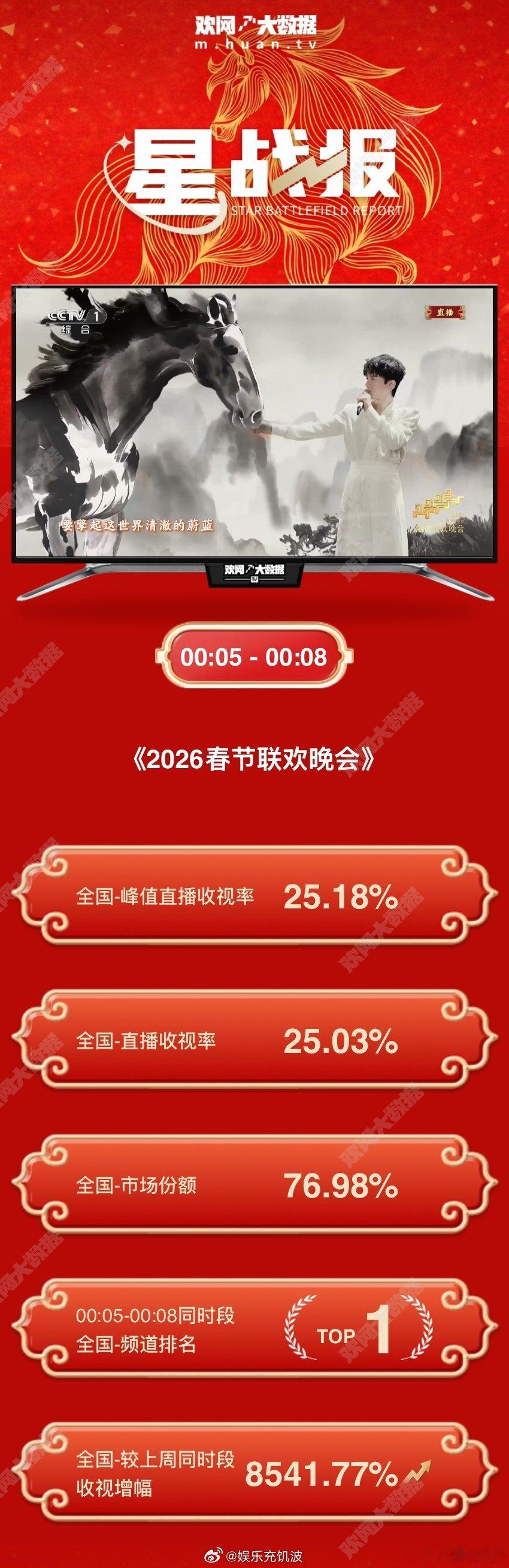 张杰零点独唱含金量 25.18%收视TOP1!零点出场依旧是全场高光,歌声一响锁定全民,这就是张杰的含金量!