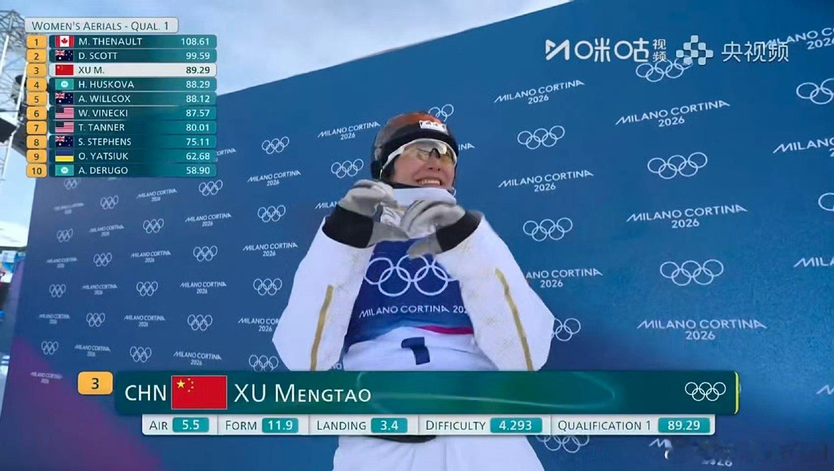 徐梦桃第一跳89.29分晋级决赛,恭喜!!!