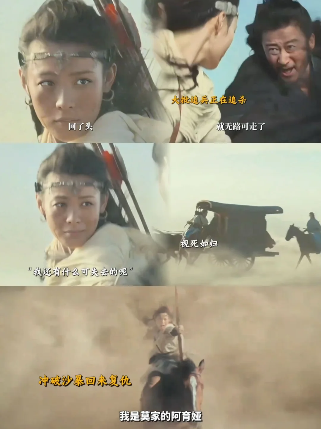 从被宠着的小公主,到家园遇难,她咬着牙说“我莫家还没有到最后”,这股子情绪状态,真的是把自己融入到了角色里。大沙暴里折返复仇,不是黑化,是姑娘家亲手给自己铸铠甲。我莫家由我来守!!!