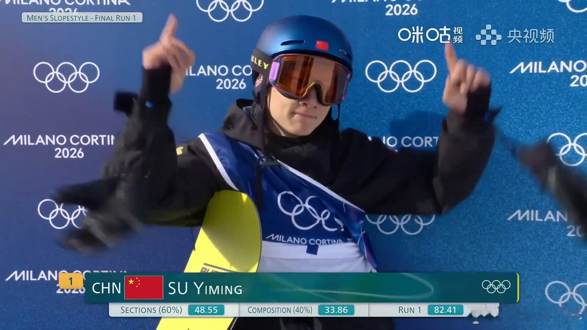 苏翊鸣完成22岁第一滑 苏翊鸣顺利完成决赛第一滑,动作规范、落地稳健,稳中求进苏翊鸣第一滑82.41分苏翊鸣第一滑超长等分