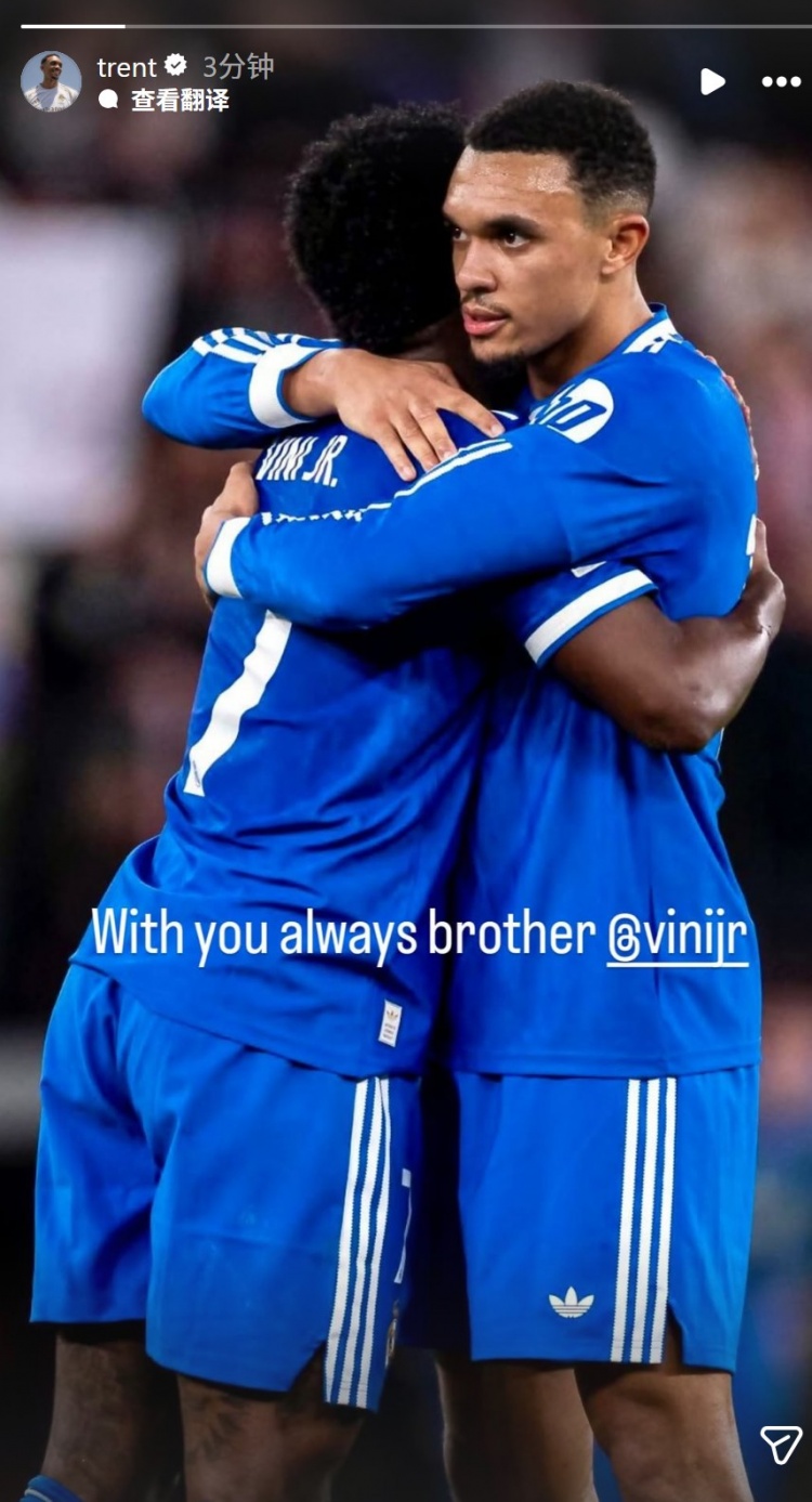阿诺德社媒晒合照声援维尼修斯:永远与你同在,兄弟