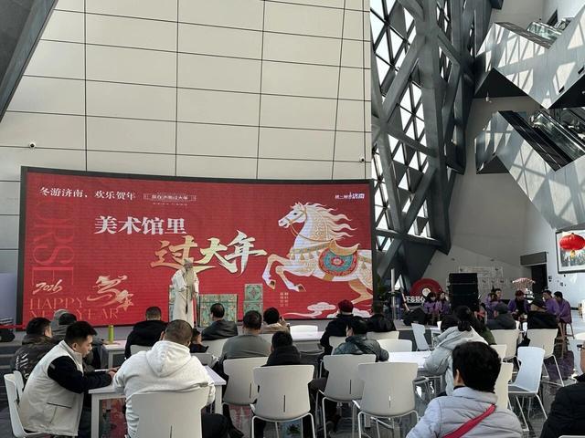 活动当天,美术馆洋溢着浓浓的新春气息,济南市吕剧院的专业演员身着精美戏服登场演绎优秀吕剧剧目《墙头记》。演员们唱腔委婉动听、身段灵动传神,将剧中人物的情感与性格展现得淋漓尽致;地道的齐鲁乡音与精湛的表演技艺,赢得了现场观众的阵阵掌声。现场欢声笑语不断,传统文化的暖意与新春的喜乐相互交融,为市民留下了难忘的文化记忆。