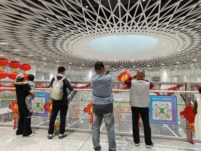 大年初二一早,深圳特区报&读特记者走进岗厦北站,指示牌还在提醒乘客“节日期间请注意安全,有序候车”。早高峰不再像平日那样拥挤,却多了一些举着手机、抬头张望的游客。