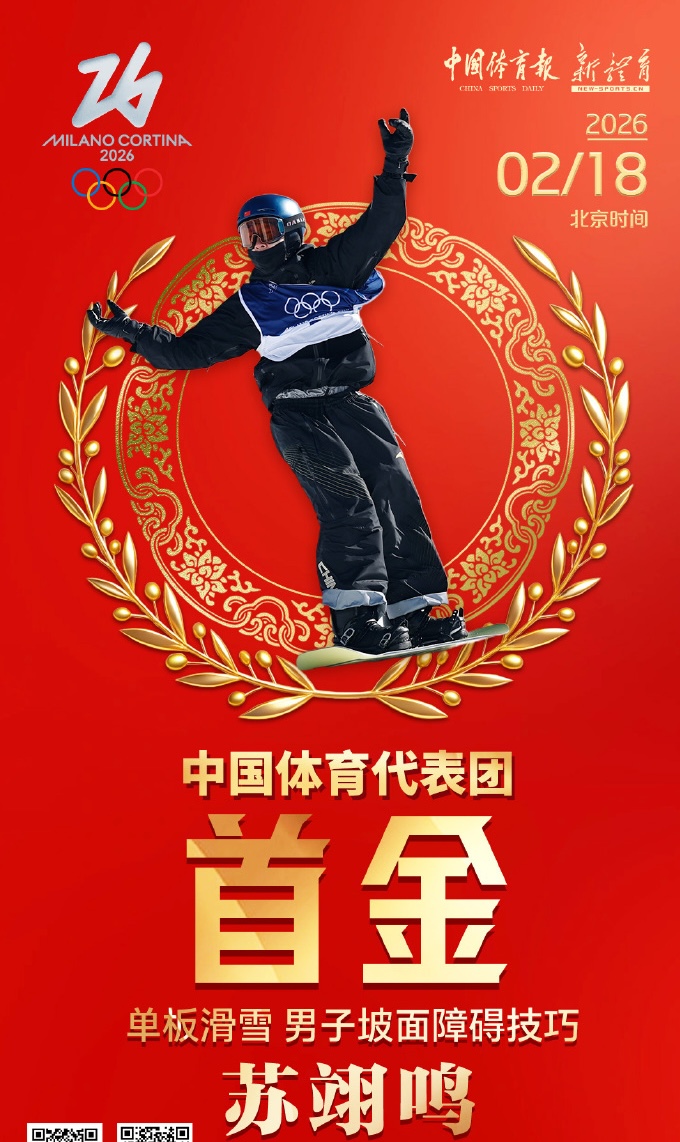 刚刚,苏翊鸣在22岁生日当天斩获单板滑雪男子坡面障碍技巧冠军,为中国体育代表团拼下米兰冬奥会首金!这是他第二枚冬奥金牌,第四枚冬奥奖牌。