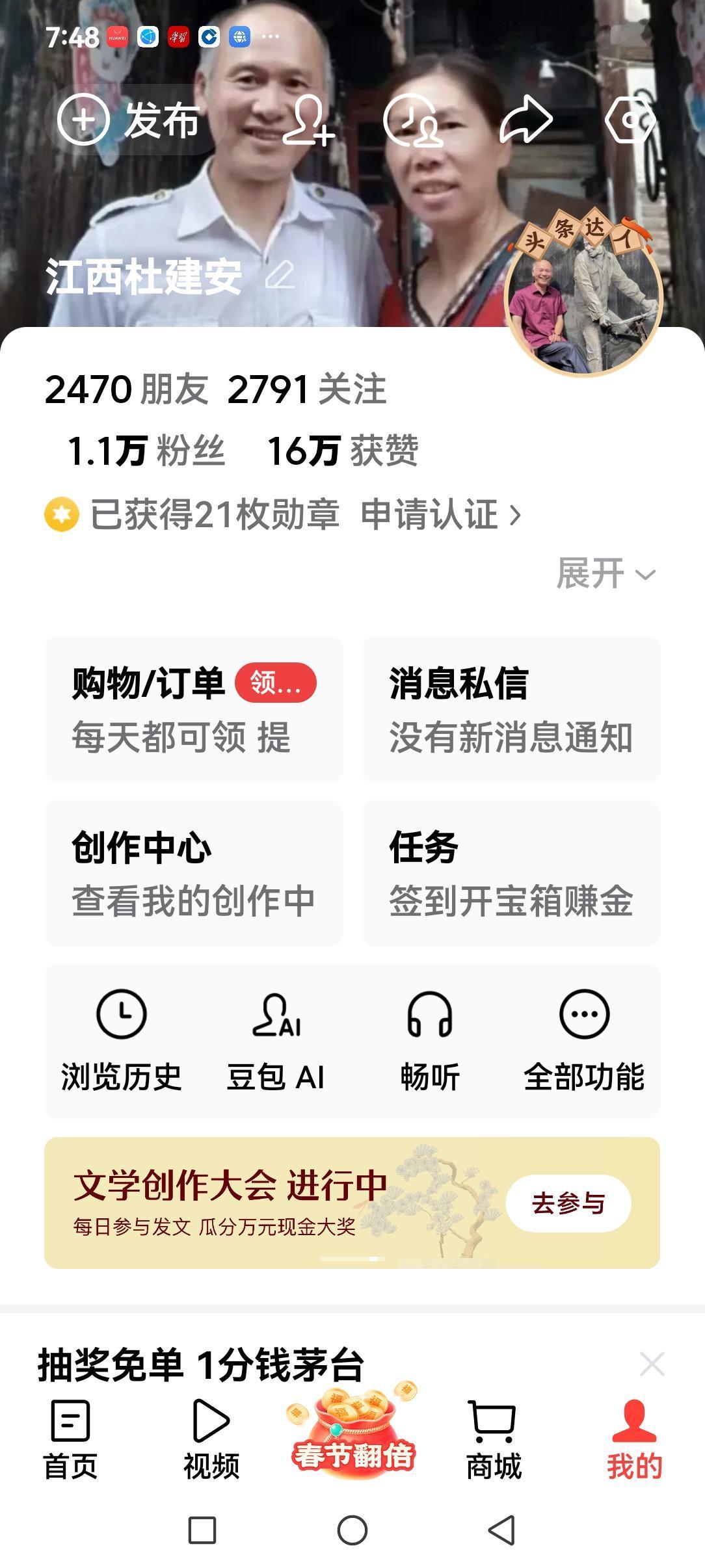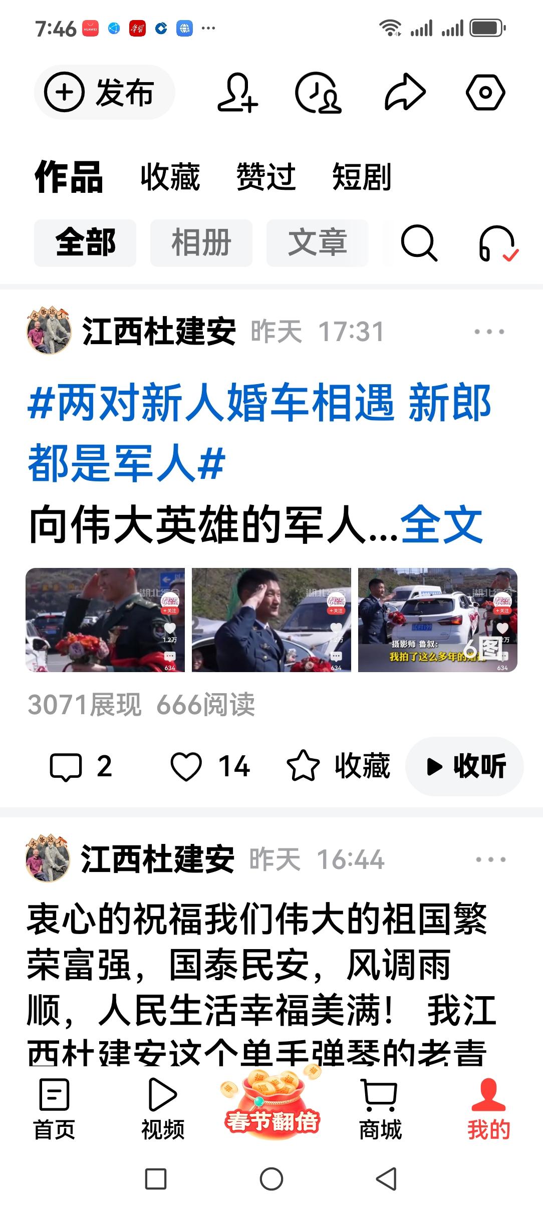 致敬保家卫国的伟大英雄的军人! 同时,向那些站在军人身后默默支持他们建功立业、共同铸就光辉灿烂的军功章及共同沐浴着军功章的伟大的军嫂们,致以最深情的致意! 附:原创抒情七律一首:军人军嫂心相印 作者:江西杜建安 保家卫国担重负,军人最是可讴歌。 戍边卫国傲凌霜,钢枪紧握盯豺狼。 军人有泪不轻流,流血只付笑谈中。 军功章中父母笑,另一半是我媳妇! 真诚分享