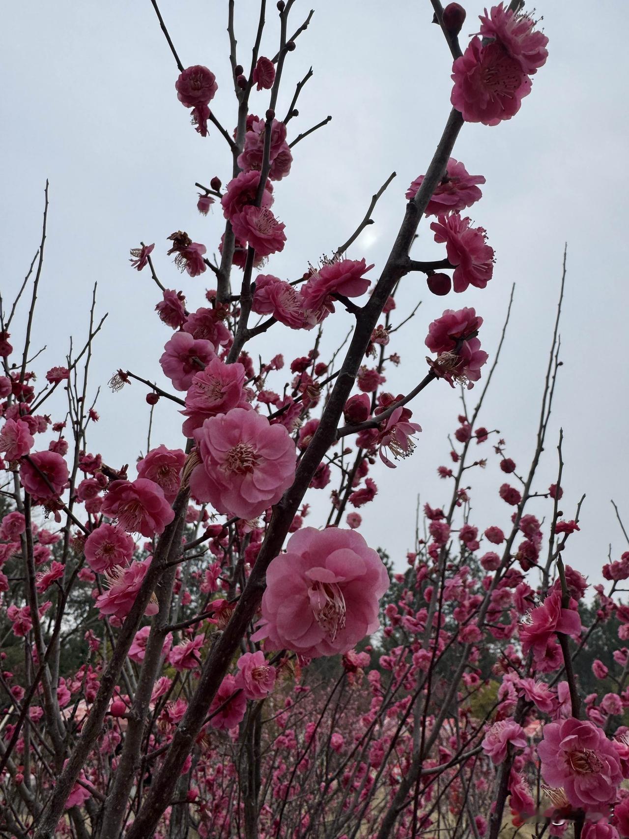 大年初二出门溜达,去公园一看,梅花都开得热热闹闹,那叫一个漂亮!就像武汉常青公园,春节时红梅正值盛花期,红艳艳一片,给冬日添了不少温暖。阳光一照,游客们在树下嬉笑打卡,小朋友奔跑嬉戏,老人在长椅上享受宁静。 还有宿州三角洲公园也不错,免费又无需滤镜。宿州梅花2月底到3月中下旬是最佳观赏期,像西山景区、清风园等地,红梅、白梅清香扑鼻。这大年初二看到梅花盛开,就感觉这一年都有了好兆头,满是希望!