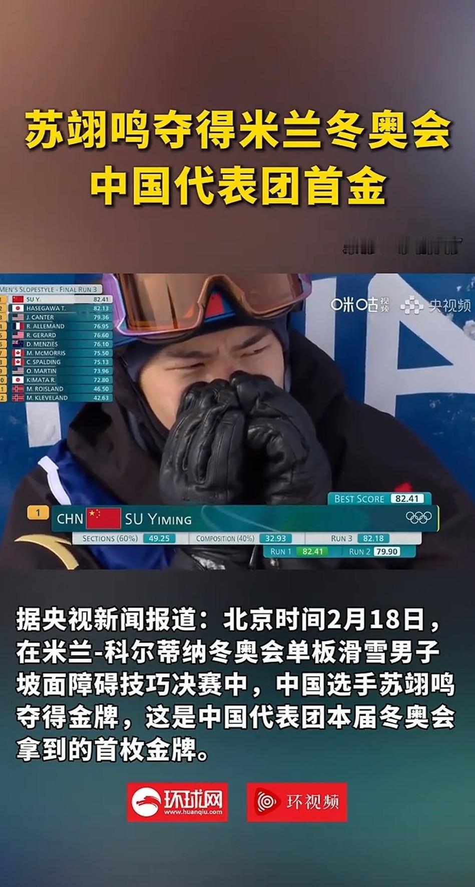 今日米兰冬奥苏翊鸣拿下中国首金,这才是马年最燃的开年礼 我发现,真正的强者,从不会被年龄和压力定义。 北京时间2月18日,米兰冬奥会单板滑雪男子坡面障碍技巧决赛,中国选手苏翊鸣在自己22岁生日当天,以82.41分的全场最高分夺冠,为中国代表团斩获本届赛事首金。 这不仅是一块金牌,更是少年用热爱和坚持,把“不可能”滑成了“我可以”。 决赛前,没人能想到苏翊鸣会以这样的方式书写历史。资格赛中,他一度排名第八惊险晋级,不少人担心他能否顶住压力。 但在决赛首轮,这位少年直接拿出了“反脚1800度转体”的超高难度动作,整套动作行云流水,落地时稳如磐石,裁判直接打出82.41分的全场最高分。 后续两轮,他分别拿到79.90分和82.18分,虽然没有超越首轮,但每一次滑行都展现了极致的稳定性。 当最终分数定格,苏翊鸣张开双臂冲向教练,看台上的父母早已泪流满面——这枚金牌,是他送给自己最好的生日礼物,也是给所有中国冰雪迷的惊喜。 苏翊鸣的夺冠,从来不是运气。他的技术特点,早已超越了年龄的限制: 难度储备领先:他掌握了“背靠背1980”等世界顶级难度动作,团队甚至将高难度动作拆解为7个0.1秒的容错帧,通过高速摄影反复校正,确保每一个细节都精准无误。 心态战术成熟:他擅长“首轮奠定优势”,用超高难度动作给对手施压,后续轮次稳扎稳打,这种“稳中求险”的智慧,让他在顶级赛场始终占据主动。 跨界训练加持:为了应对落地时高达体重3倍的冲击力,他还进行芭蕾转体、核心力量等跨界训练,增强身体控制力,这也是他能完美完成高难度动作的关键。 不止是首金,更是中国冰雪的里程碑,这枚金牌的价值,远超一场比赛的胜负: 对中国代表团而言,它结束了开赛11天的“金牌荒”,提振了整体士气,为后续参赛项目注入了信心。 对项目发展而言,它打破了国外选手在单板滑雪坡面障碍技巧项目的长期优势,证明中国在雪上技巧类项目的训练理念和人才培养路径是可行的。 对苏翊鸣个人而言,他集齐了三色奥运奖牌,成为中国单板滑雪史上首位在冬奥会上收获不同项目奖牌的选手,完成了从“天才少年”到“传奇滑手”的蜕变。 “真正的热爱,是在无人问津的日子里默默坚持,在万众瞩目的时刻惊艳所有人。”苏翊鸣用22年的人生,诠释了这句话的重量。 你觉得苏翊鸣的下一个目标,会是攻克2160度转体吗?欢迎在评论区聊聊你的看法。 (内容取材网络) 点亮〔收藏和赞〕你我共同成长