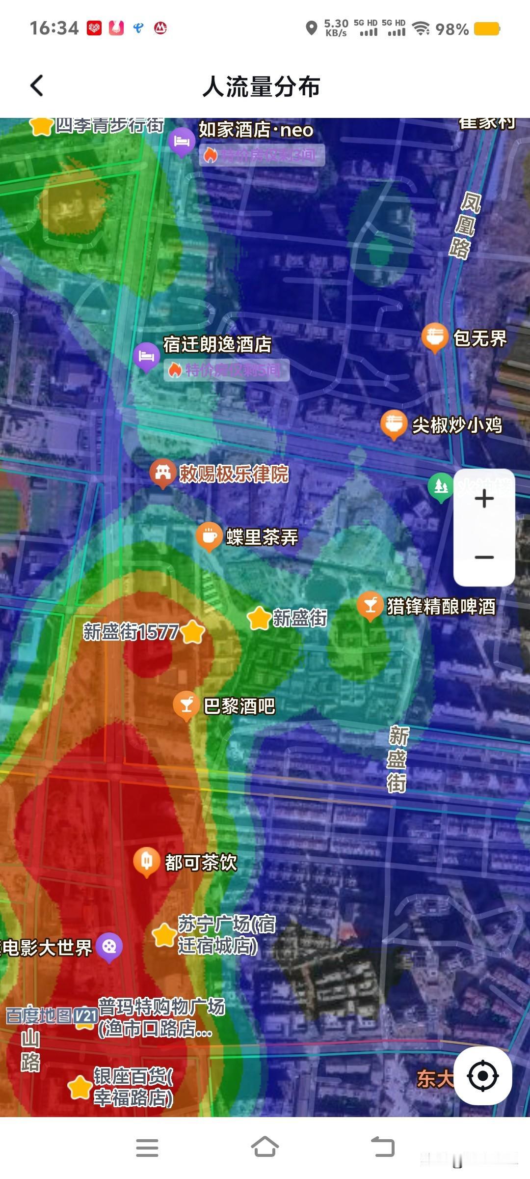 宿迁的几个景点,皂河龙运城,项羽故里,新盛街,除了项羽故里之外。 这俩景点也就过年时候能火一下,看这初二热力图,就火这几天,到初九逢会,然后又回归平淡了。宿迁项羽