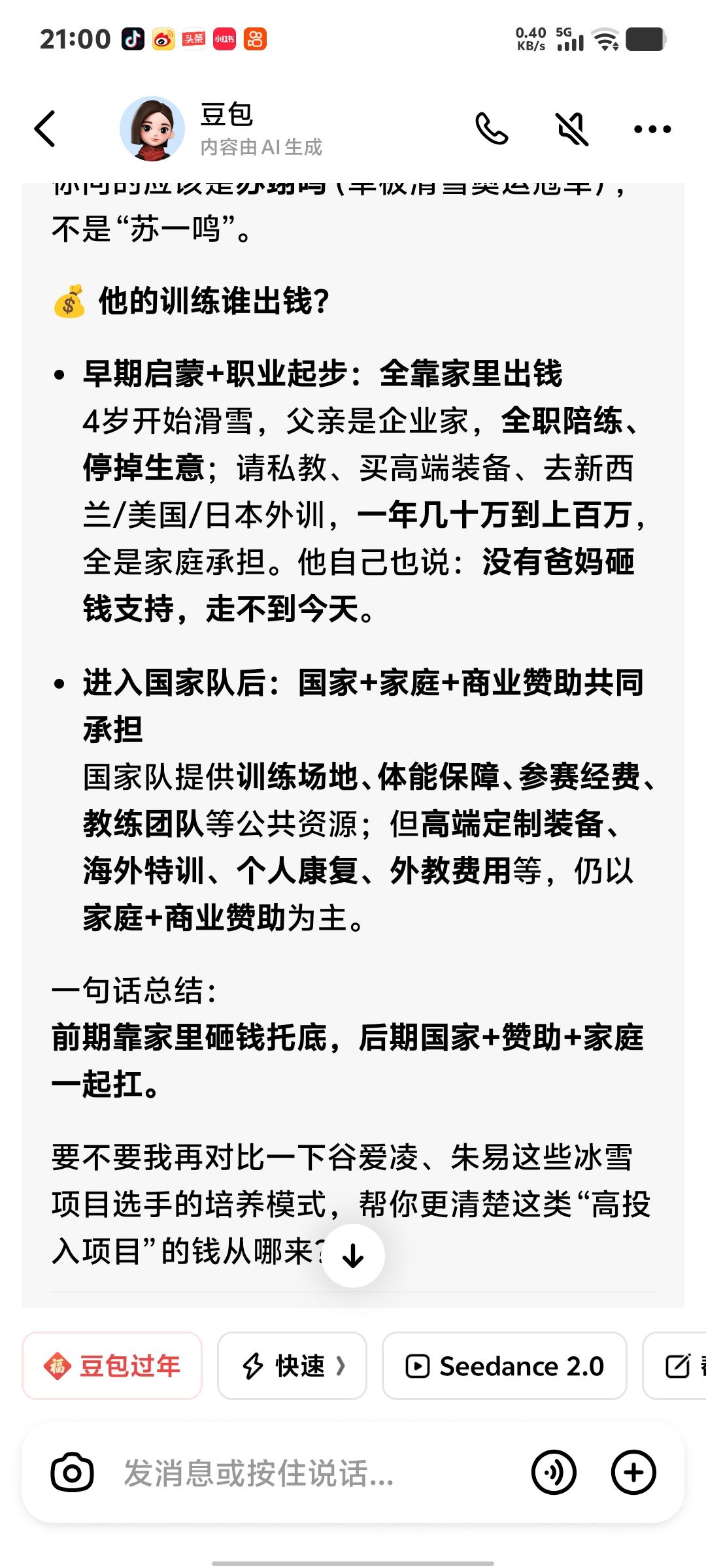 苏翊鸣拿到金牌,微博上的热搜都爆了。暴字直接变成了紫红色。看得出全国人民对中国首金的盼望程度啊。 而且很巧,今天还是他的生日。得了吧12.41分儿。所以这块金牌在他的心中分量也特别重。 刚滑到头儿。小伙子坐在地上就流泪了。其实他心里一直非常紧张,压力也非常大。 因为前几天华拿了铜牌。还失误,摔了一跤。所以今天滑还正好是生日,还是中国的第一块金牌。 全国人民都盼望着首金的诞生。他圆了所有人的梦。看到他和爸爸妈妈拥抱在一起,热烈欢呼,真让人羡慕。 我在豆包里搜了一下他的训练之路。他爸是成功的企业家,从4岁停掉生意,全职陪他训练。 请私教卖装备。都是十几万几十万的往里砸钱。如果没有父母这样砸钱培养。他也不会成为冠军。 所以感觉中国东北三省的冰雪还是没有被利用起来。东北这么多孩子。滑雪,滑冰有天赋的肯定很多。 可是这次冬奥会中国的金牌迟迟等不来。证明东北三省。还是太落后了。 冬奥会正式应该东北为国家出人才的时候,应该在东北的所有学校普及滑冰场。 体育课就学学滑冰,滑雪啥的,打造东北的特色体育。培养出顶尖人才。 在冬奥会时为国家夺得金牌。不用像现在一样,等了好多天。
