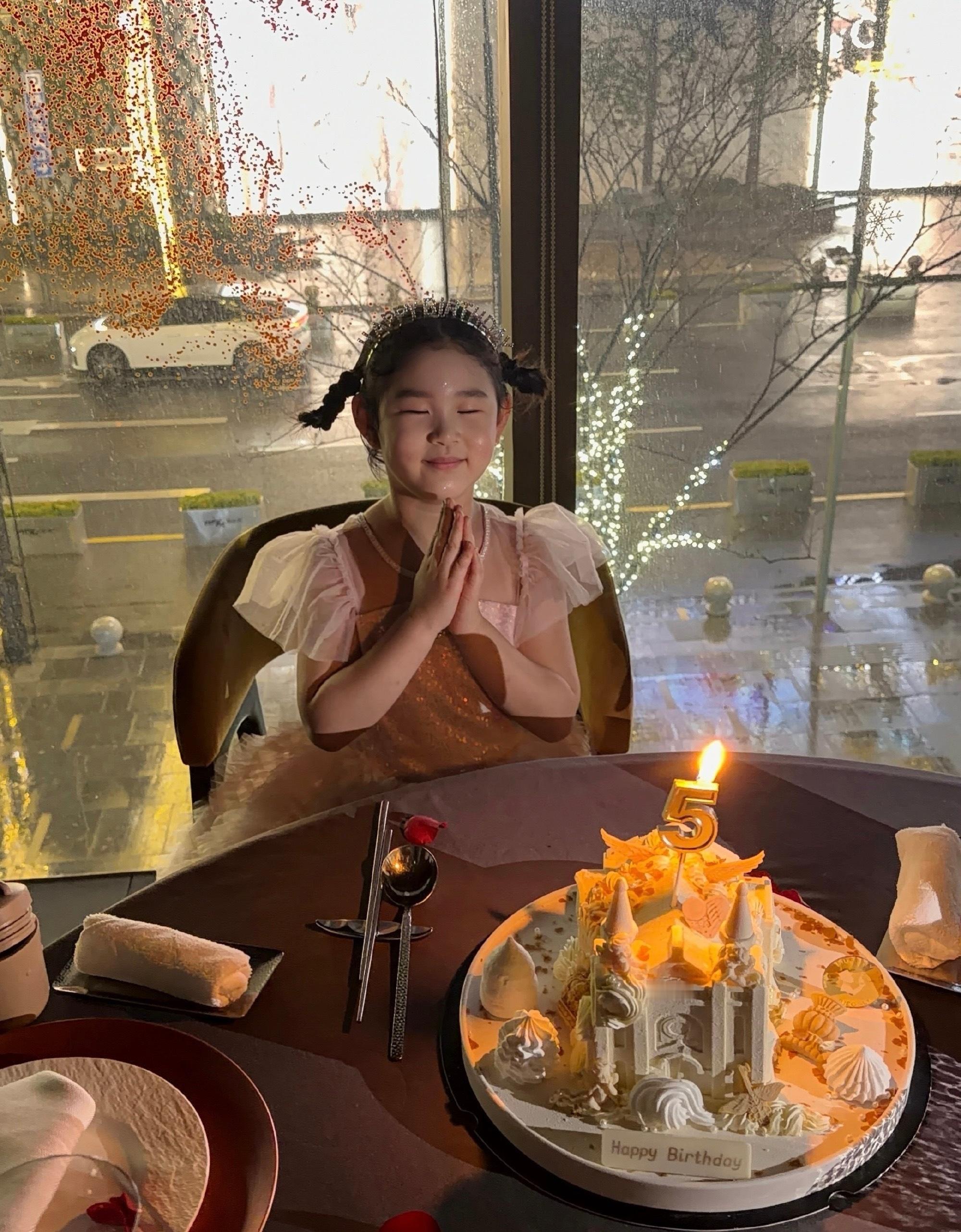 天佑和小毒液的女儿初一5岁了,颜值神态很像爸爸。