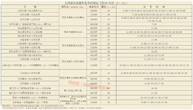 春节期间,大同景区直通车调整发车班次后进一步强化运输保障,提升服务效能。正月初一至初七,发车班次会根据客流量灵活调整,最新时刻表可在“晋游宝景区直通车”微信小程序实时查询。