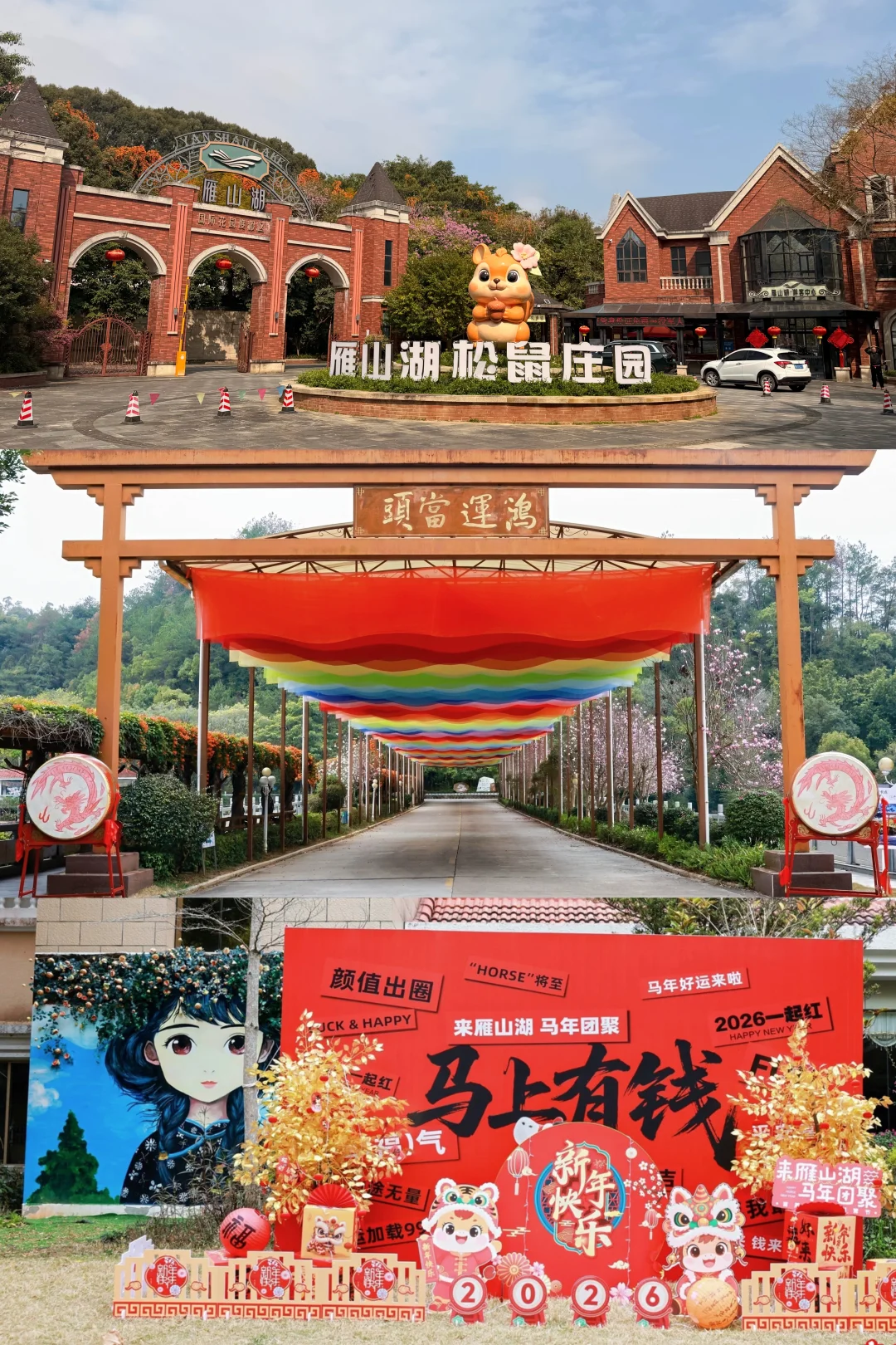 好久没来雁山湖了,带上家人一起出发 🚘梅城驾车到这也就40来分钟,感觉还是蛮近的。 好充实的一天,因为太多打卡点啦~ 许愿树🌲许个愿望[仙女R]~拍拍今年的马屁🐴💨 鸿运当头连廊🌈有过这条路事事顺利~ 自由露营区🏕️有live音乐🎶,还有巨型转盘+惊喜拆盲盒+抓马大作战+趣味套马尾,还有现磨咖啡☕冰淇淋等小吃~ 也有小火车可以坐哦(可以坐到游乐场,还能看松鼠,走独木桥、划船等~) 🎫39(年初一到年初六都有这个好玩的哟~) 带家人再适合不过了,小朋友玩的最很开心啦!!
